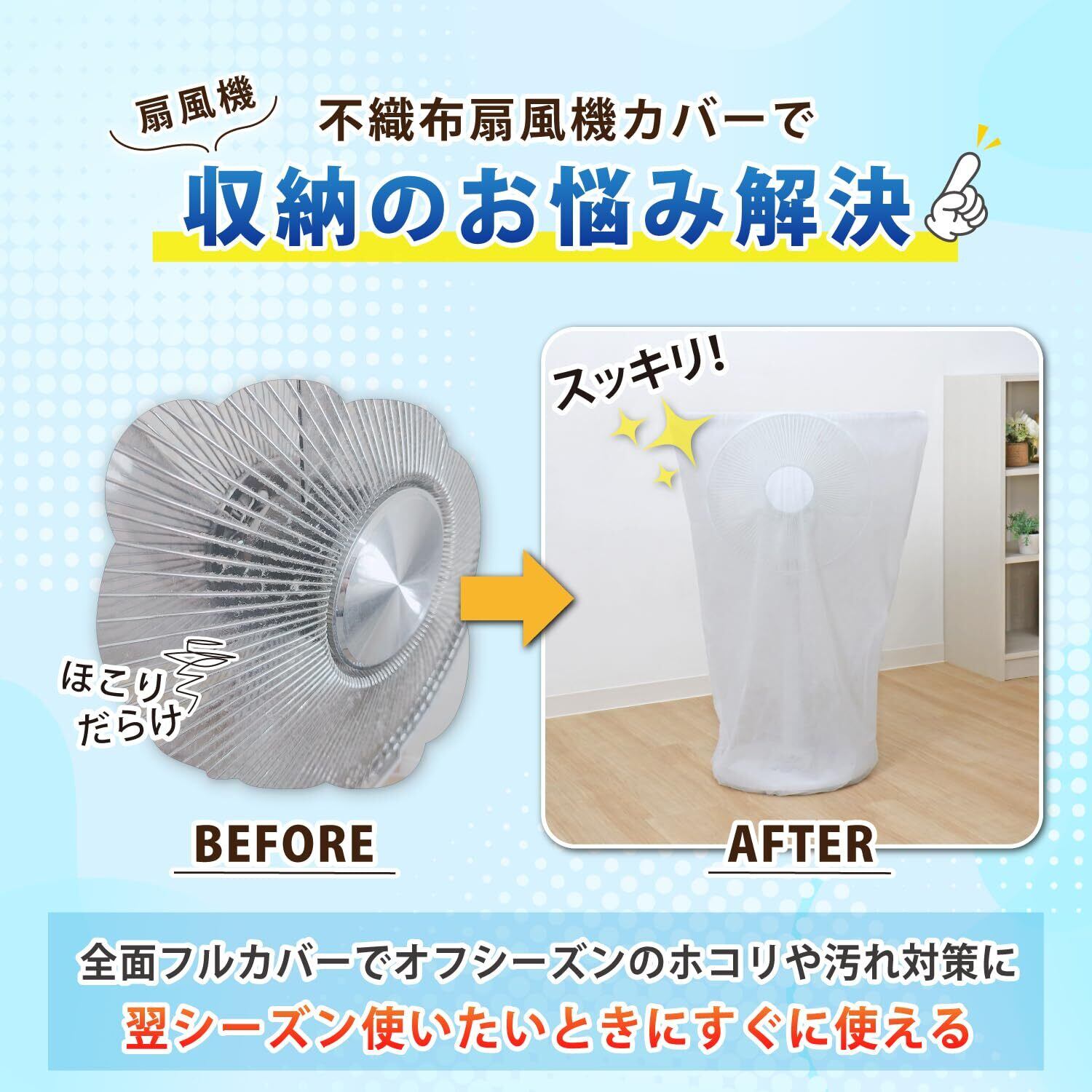 【季節家電の収納に】:ハロゲンヒーターやサーキュレーターなどのホコリよけ収納カバーとしてもお使いいただけます。