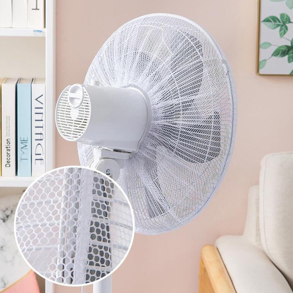 GOODCHI 扇風機カバー 扇風機安全カバー 直径40~45cm 2枚セット 裏までかかる 紐で固定するタイプ 子供 指はさみ防止 セーフティーネット 家庭用 (白)