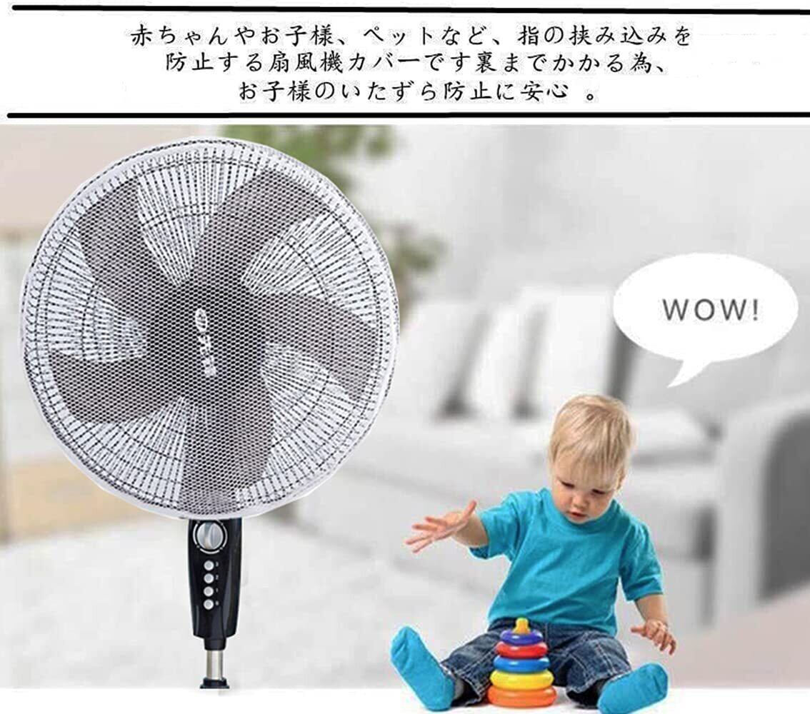 【安全性 】赤ちゃんやお子様、ペットなど、指の挟み込みを防止する扇風機カバーです。裏までかかる為、お子様のいたずら防止に安心 。