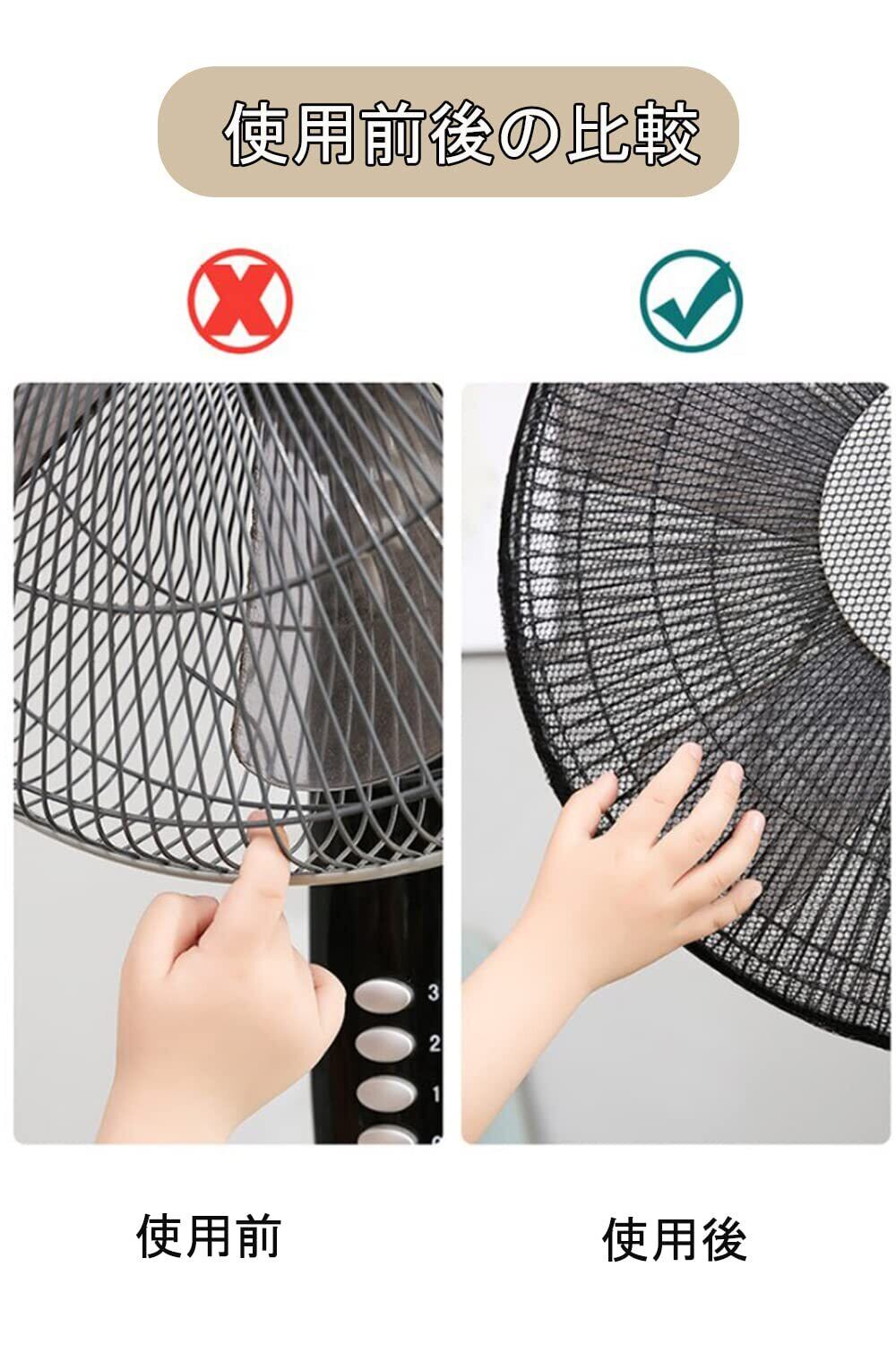 【使い易い 】簡単に扇風機に取り付けられ、洗いもしやすい、ゴムを大きくひろげて前からかぶせてください。ほどんとな扇風機へ適用です。注意事項:取り付ける際は、扇風機の電源を切り、扇叶を完全に停止してくださ。
