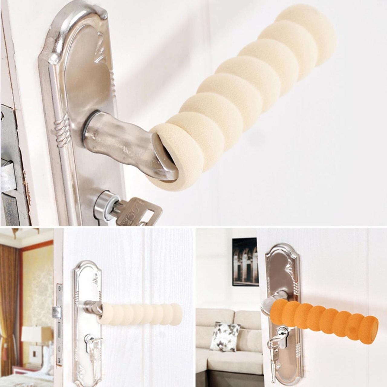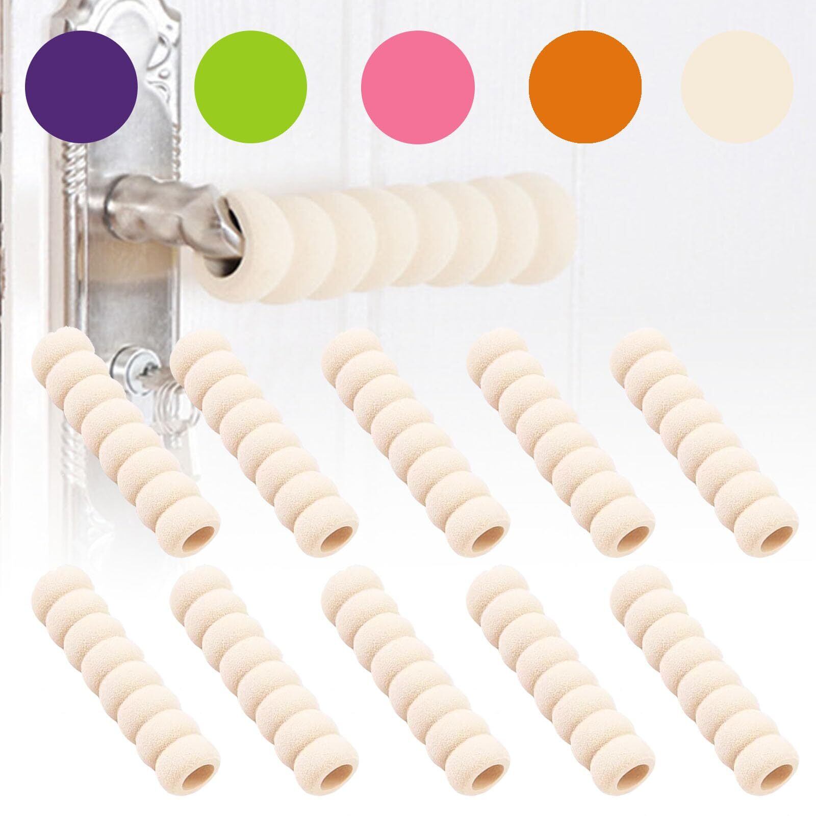 QuickYen ドアノブカバー 10個入リ ドアノブ クッション 長さ13.5cm*内径2cm ドアノブプロテクター 柔らかい 傷防止 滑り止め 壁を保護する 扉 (ベージュ)