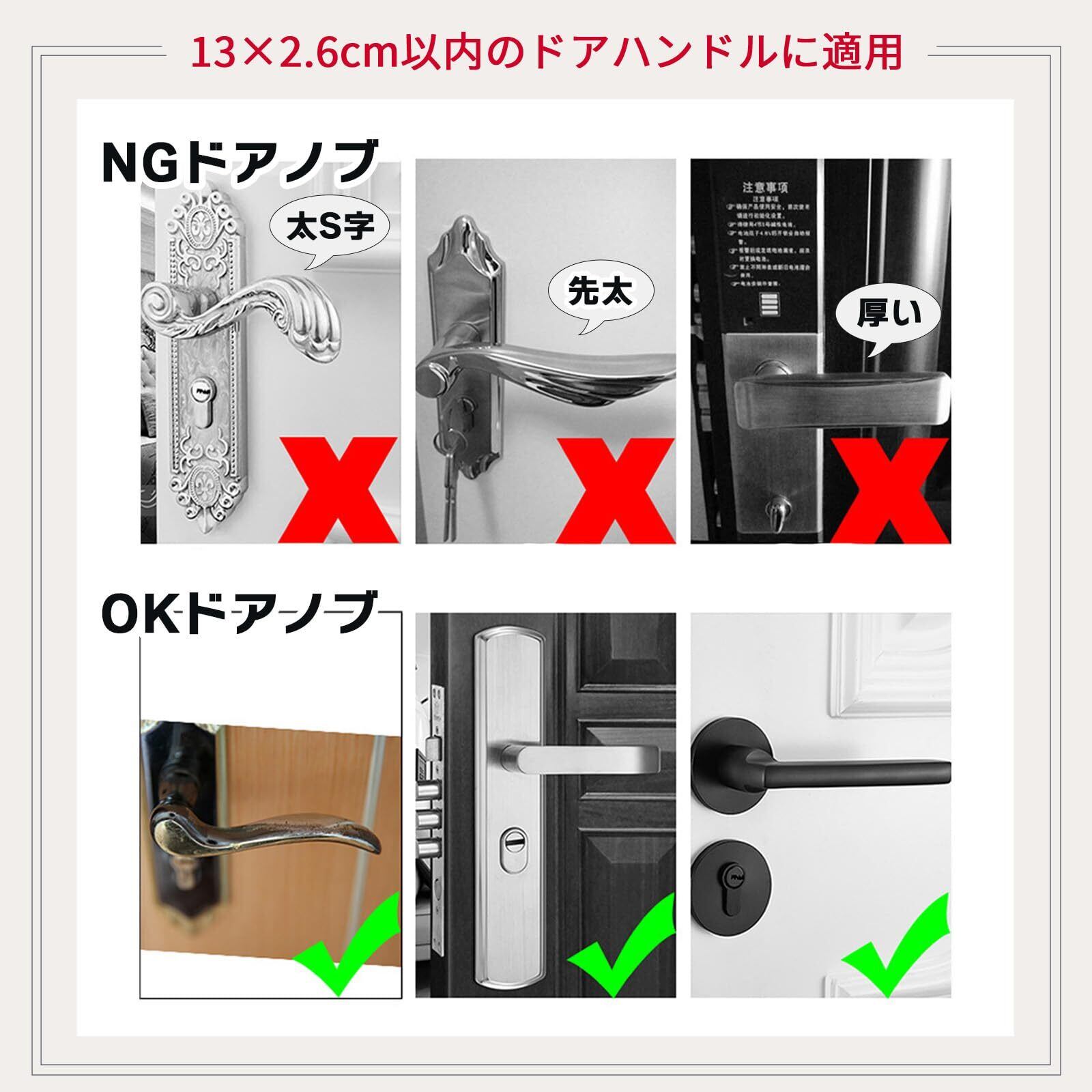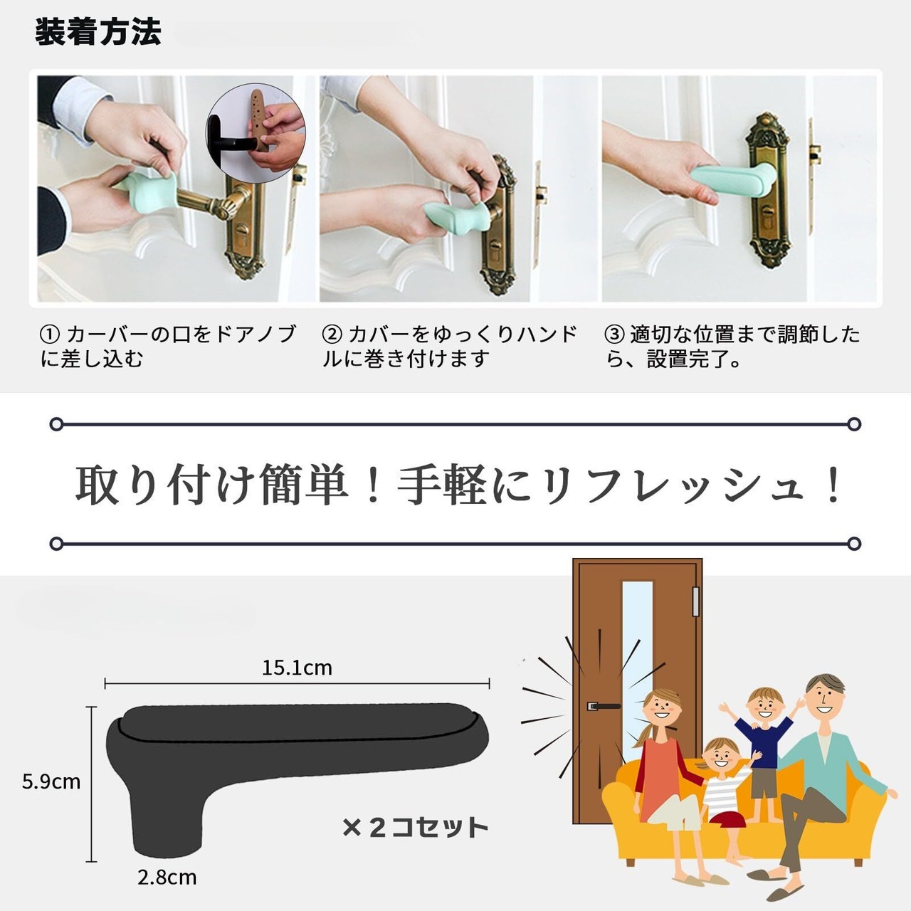 簡単取付: 伸縮性のある素材で、様々なサイズのドアノブに対応し、取り付けも簡単