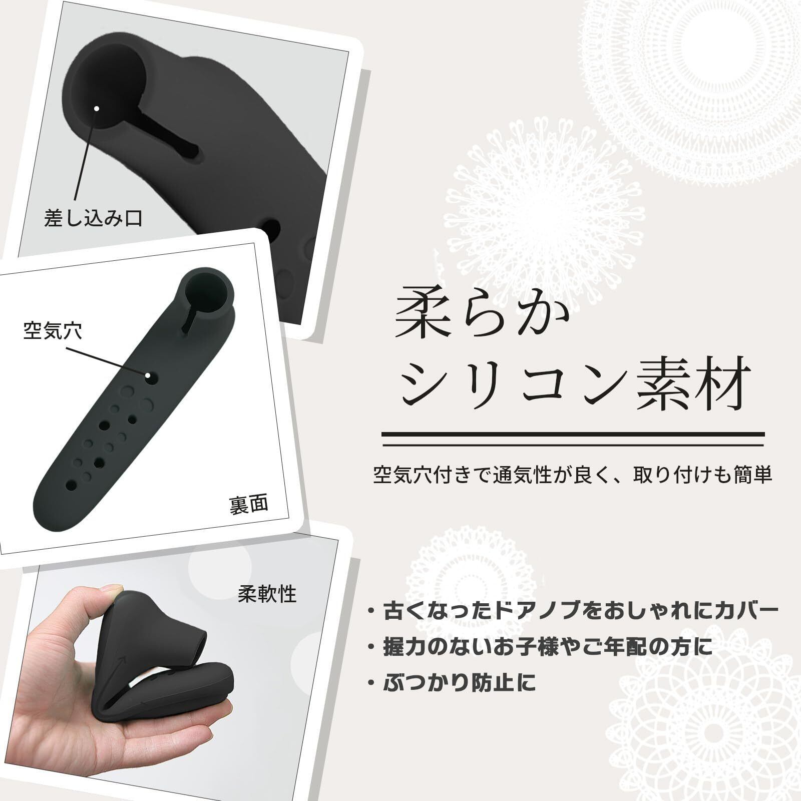 シリコン素材: 高品質シリコンを使用し、柔らかく耐久性のある素材で作られたドアノブカバー2個セット