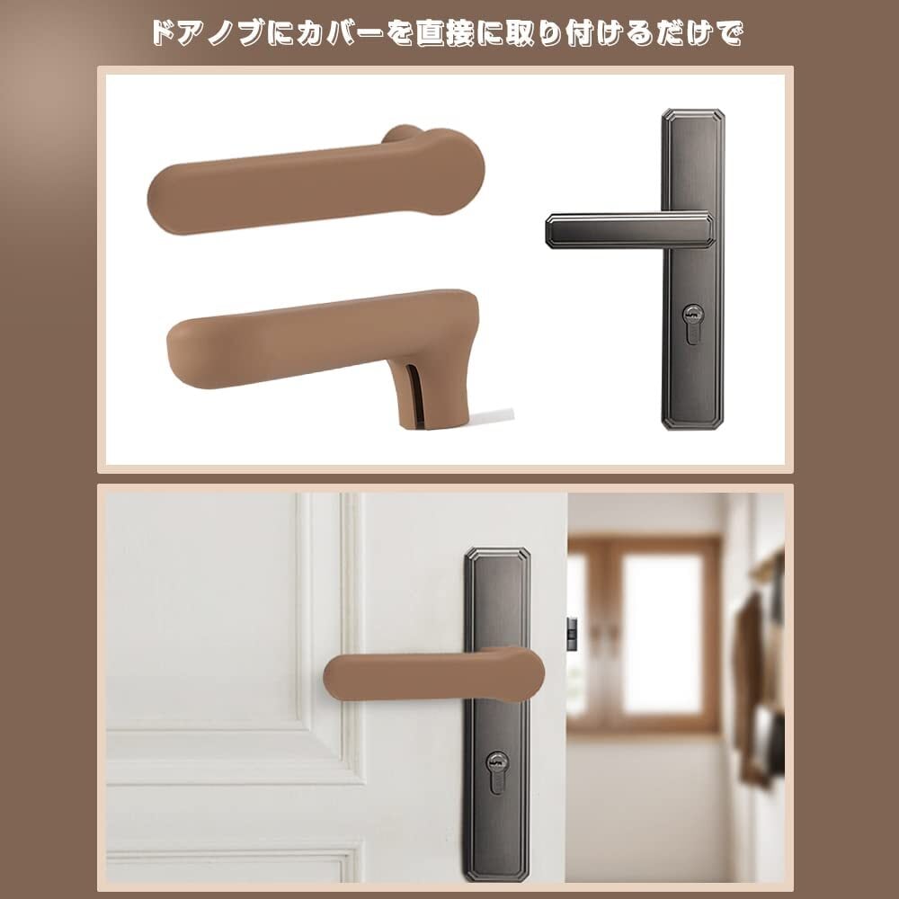 ドアノブ レバー カバー シリコン製 2個セット ドアハンドル グリップクッション 家庭ドアノブカバー 静電気防止/子供ケガ防止/防衝突/ 衝撃吸収/滑り止め 取り付け簡単 (コーヒー色)