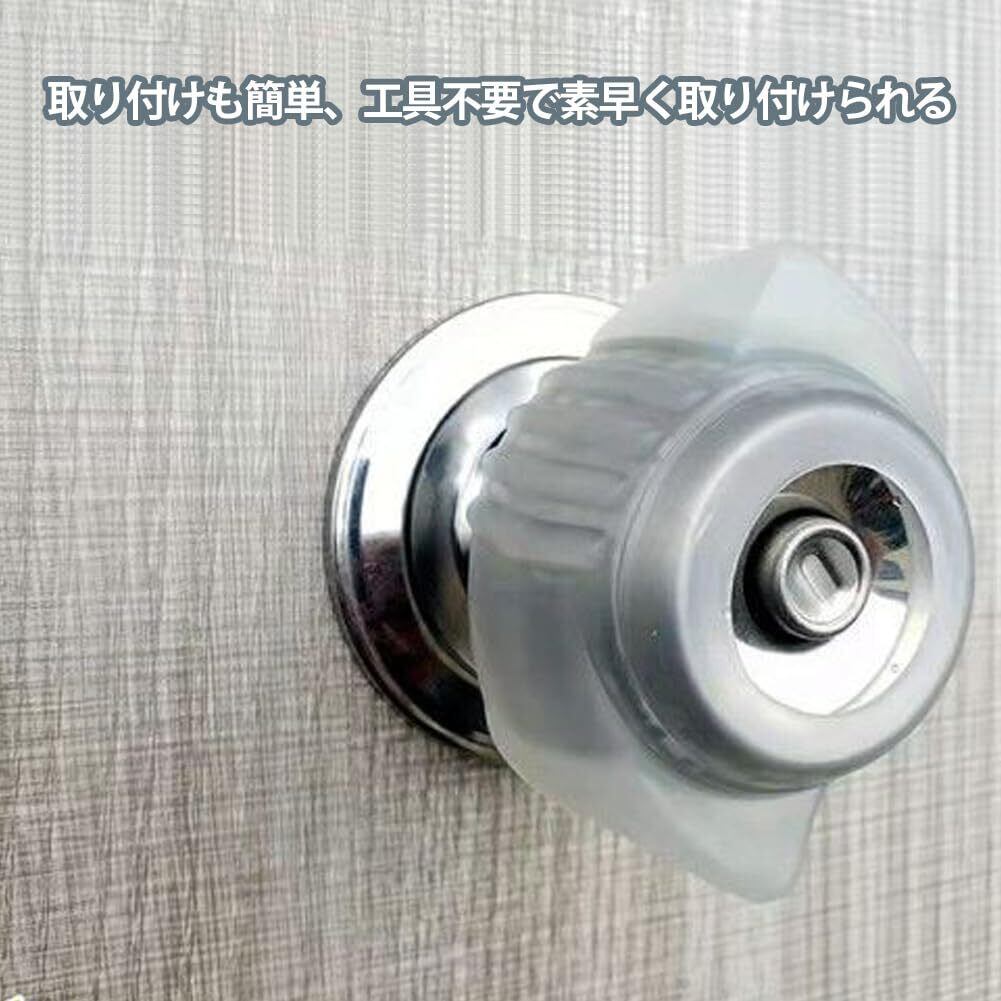 【使用やすい】このドアノブ保護カバーは、丸いドアハンドルを回しやすいように握りやすく、安心してお使いいただけます。見た目も美しく、取り付けも簡単、工具不要で素早く取り付けられる安全ドアノブカバーです。