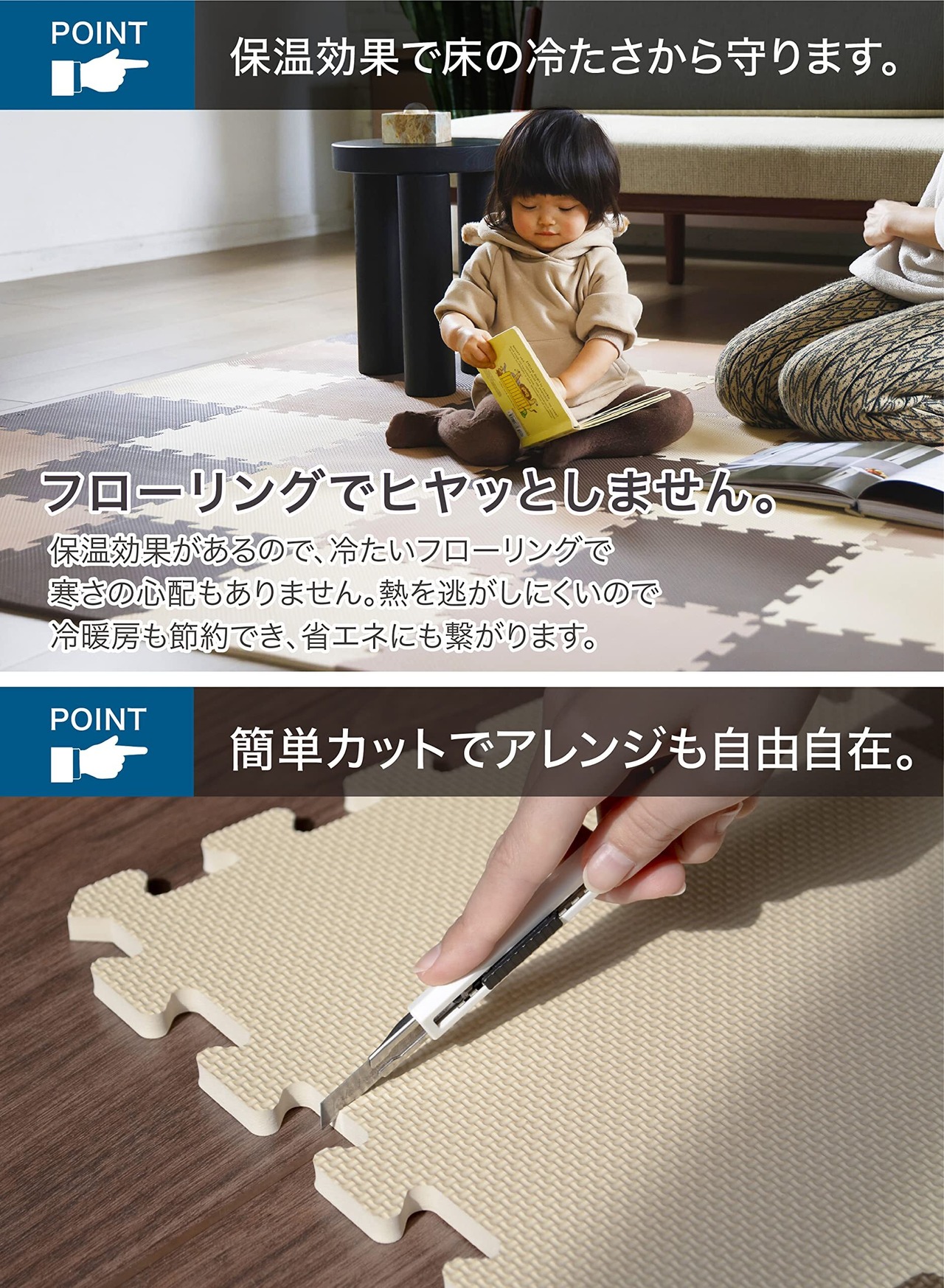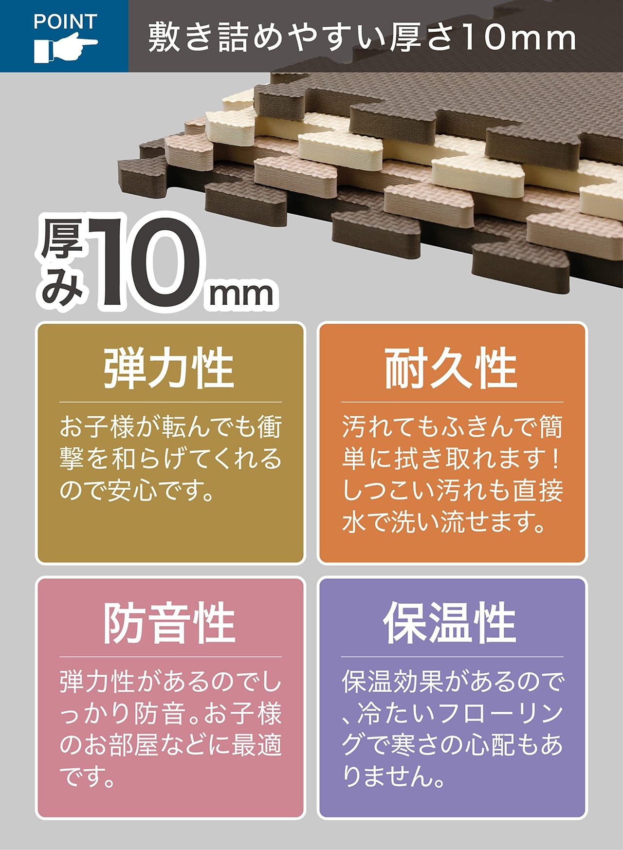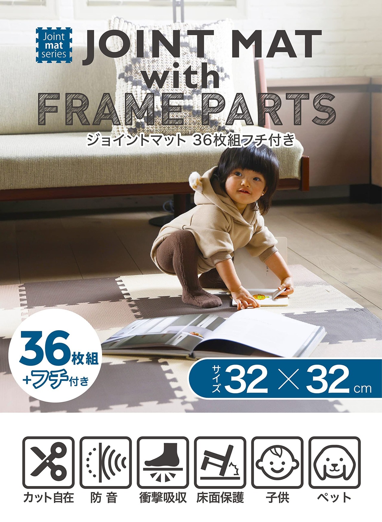 1セットで約2畳分がセットになったやわらかクッション素材のジョイントマット。