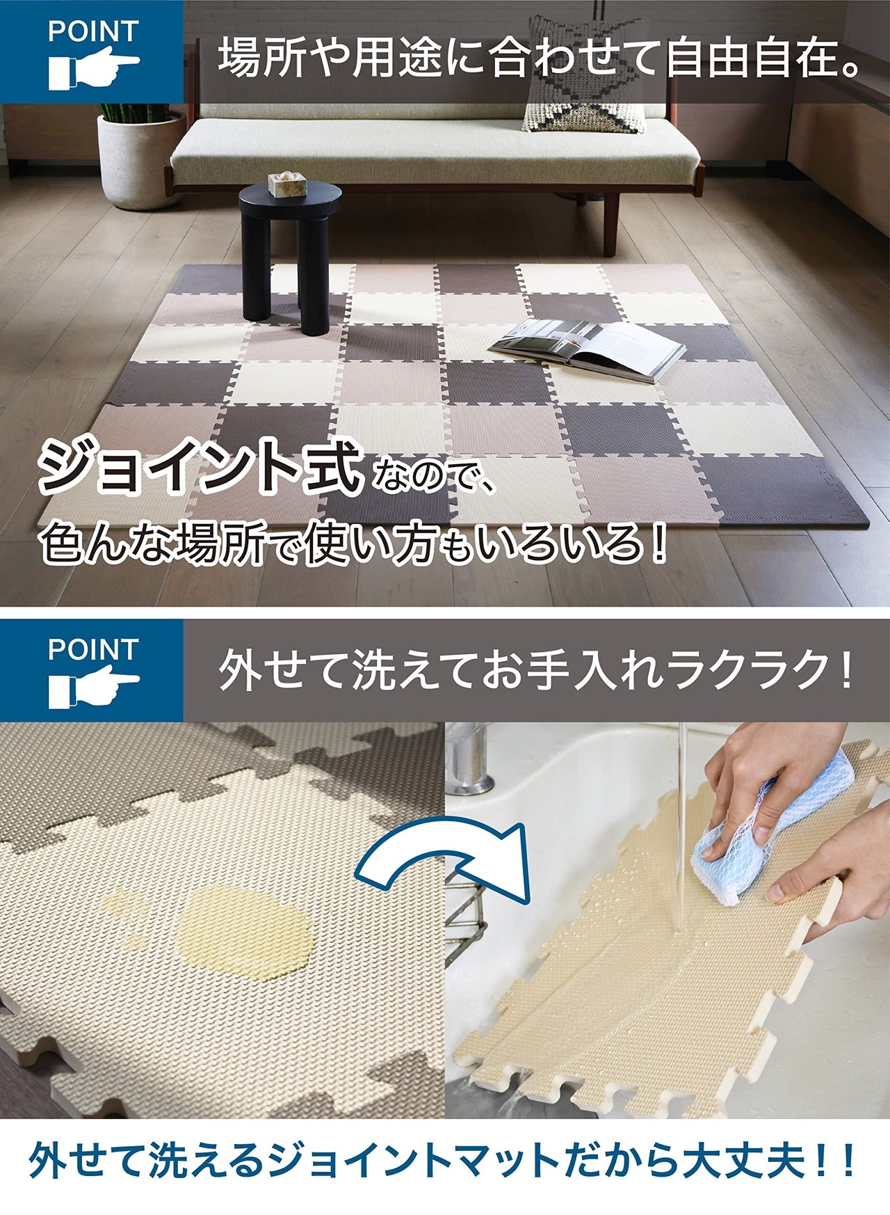 【2022最新】CBジャパン ジョイントマット ブラウン×モカ×ベージュ 36枚組 フチ付 JOINTMAT