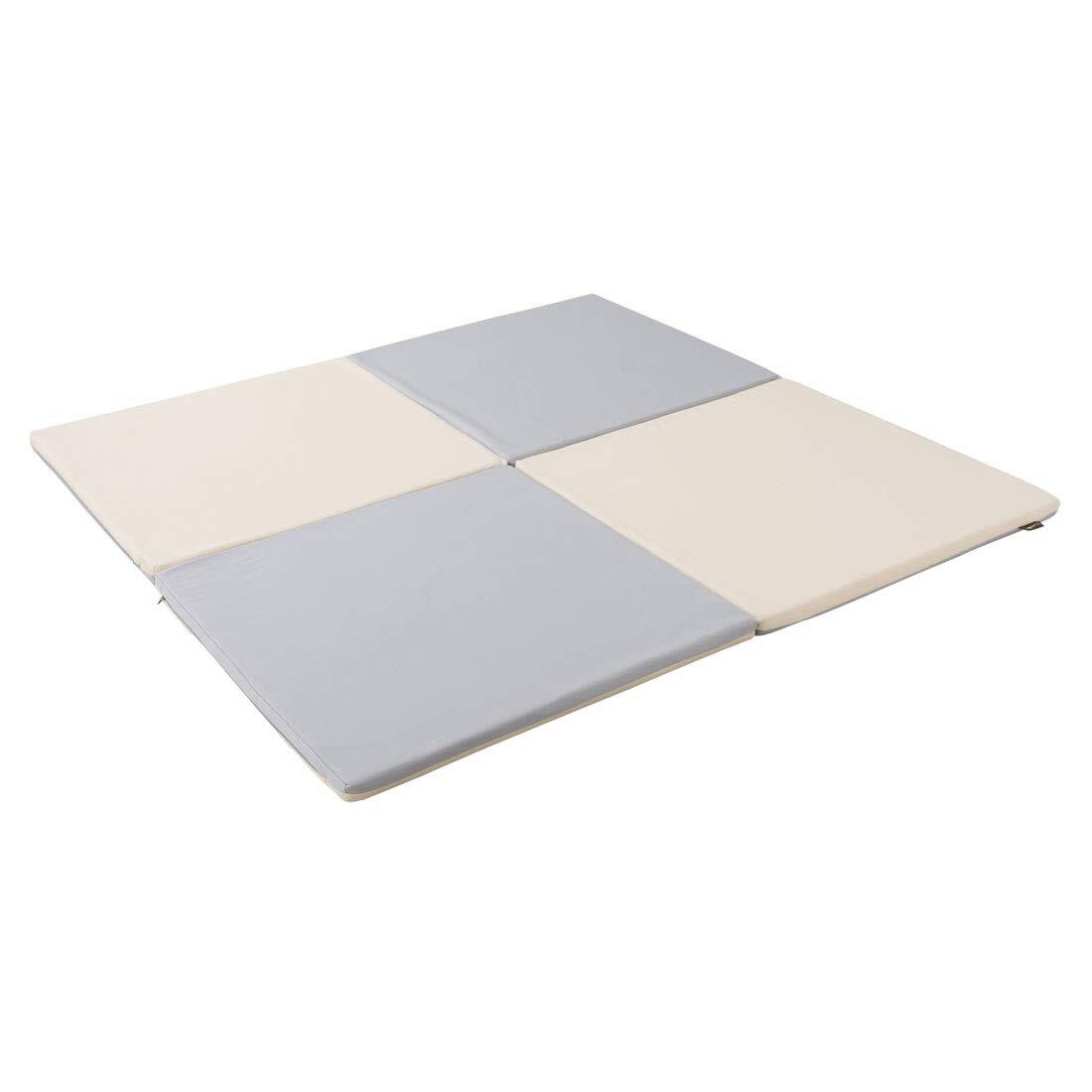 【特価商品】エムール プレイマット 大判 厚手 赤ちゃん マット 正方形 140×140 アイボリー×グレー 折りたたみ 防音 撥水 洗えるカバー ジョイントマット