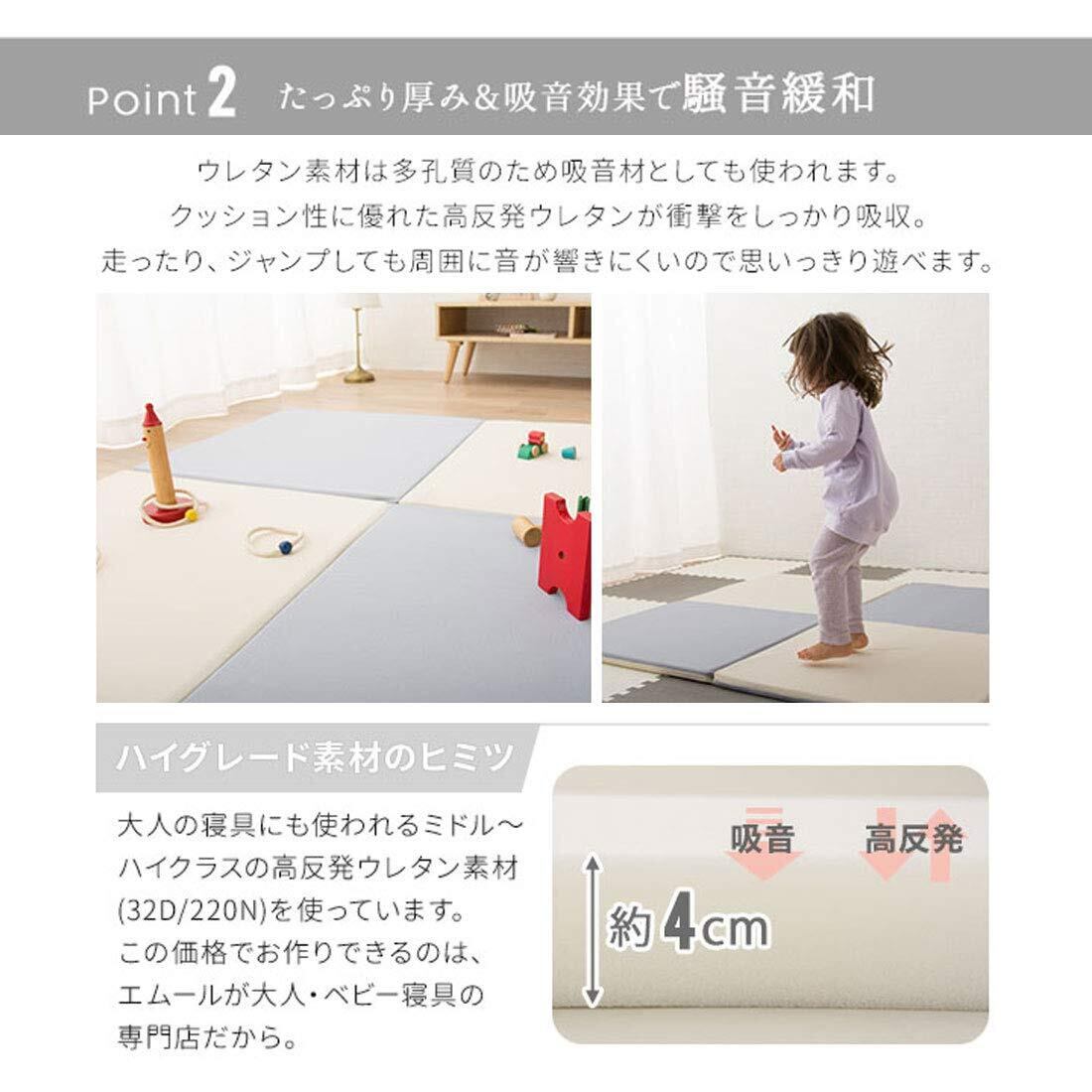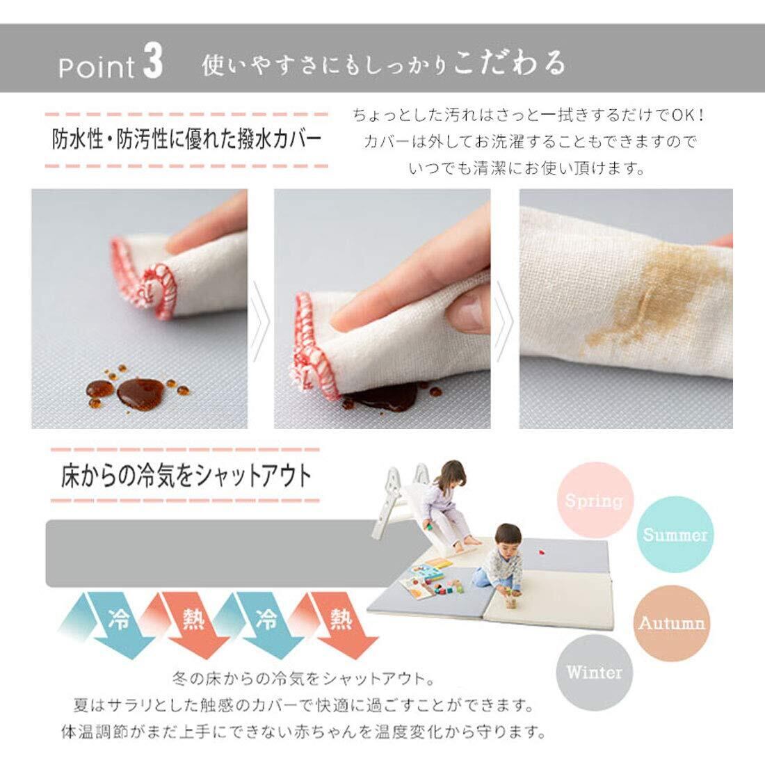 エムール プレイマット 大判 厚手 赤ちゃん マット 正方形 140×140 アイボリー×グレー 折りたたみ 防音 撥水 洗えるカバー ジョイントマット