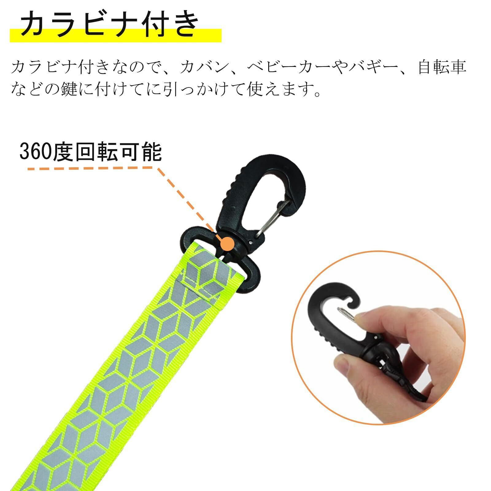 【カラビナ付き】カラビナ付きなので、サッと色々な所に引っかけて使えます。バッグや通学鞄、ランドセルや傘などに付ければ、暗い夜道も光を反射して事故防止になります。ベビーカーやバギー、自転車などの鍵に付けて、キーホルダーにしてもいいですね。