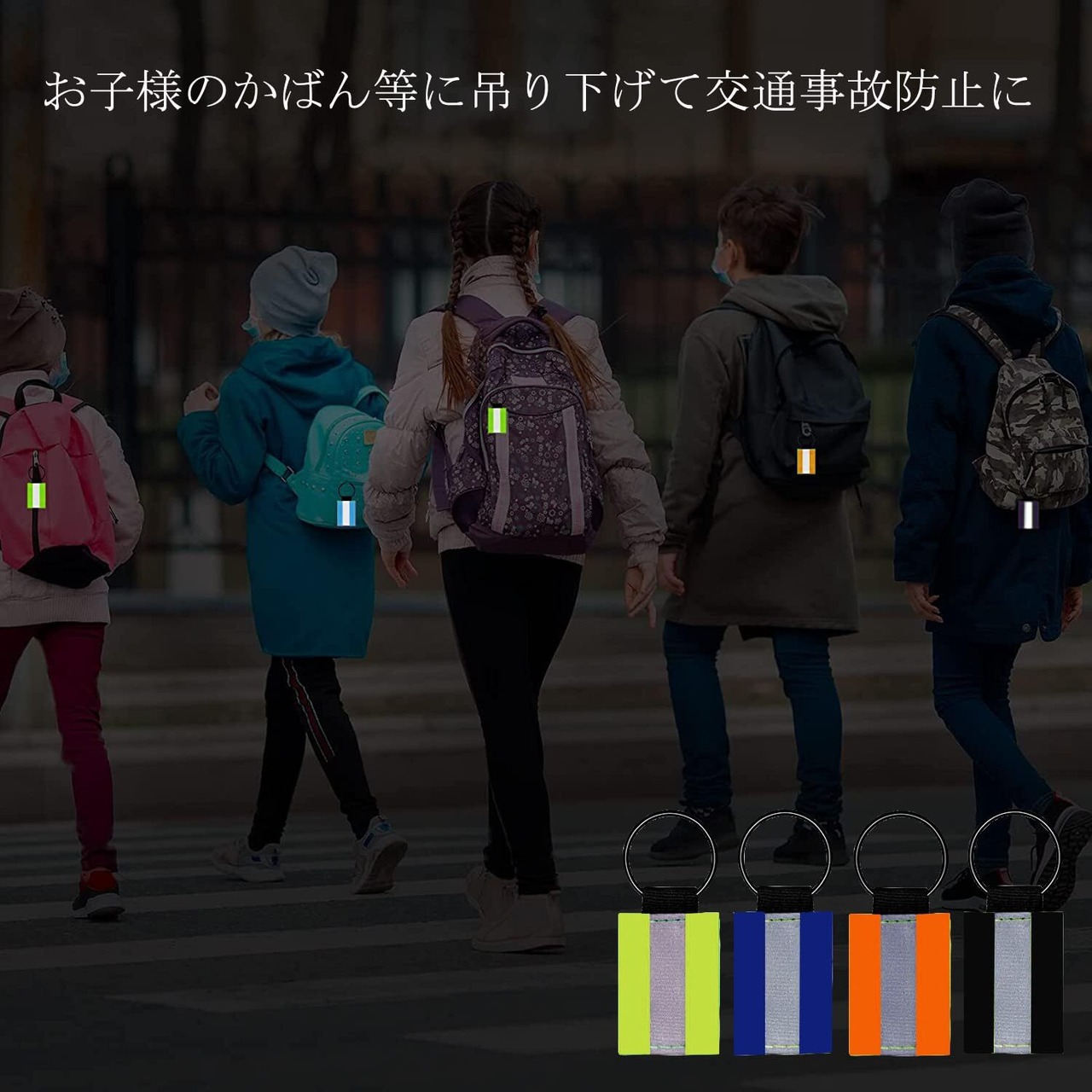【交通事故を防止】歩行者の交通死亡事故は、夕方から夜間にかけて多く発生し、昼間の約3倍。反射キーホルダーで自動車ヘッドライトの光をしっかり反射して交通事故を防止!