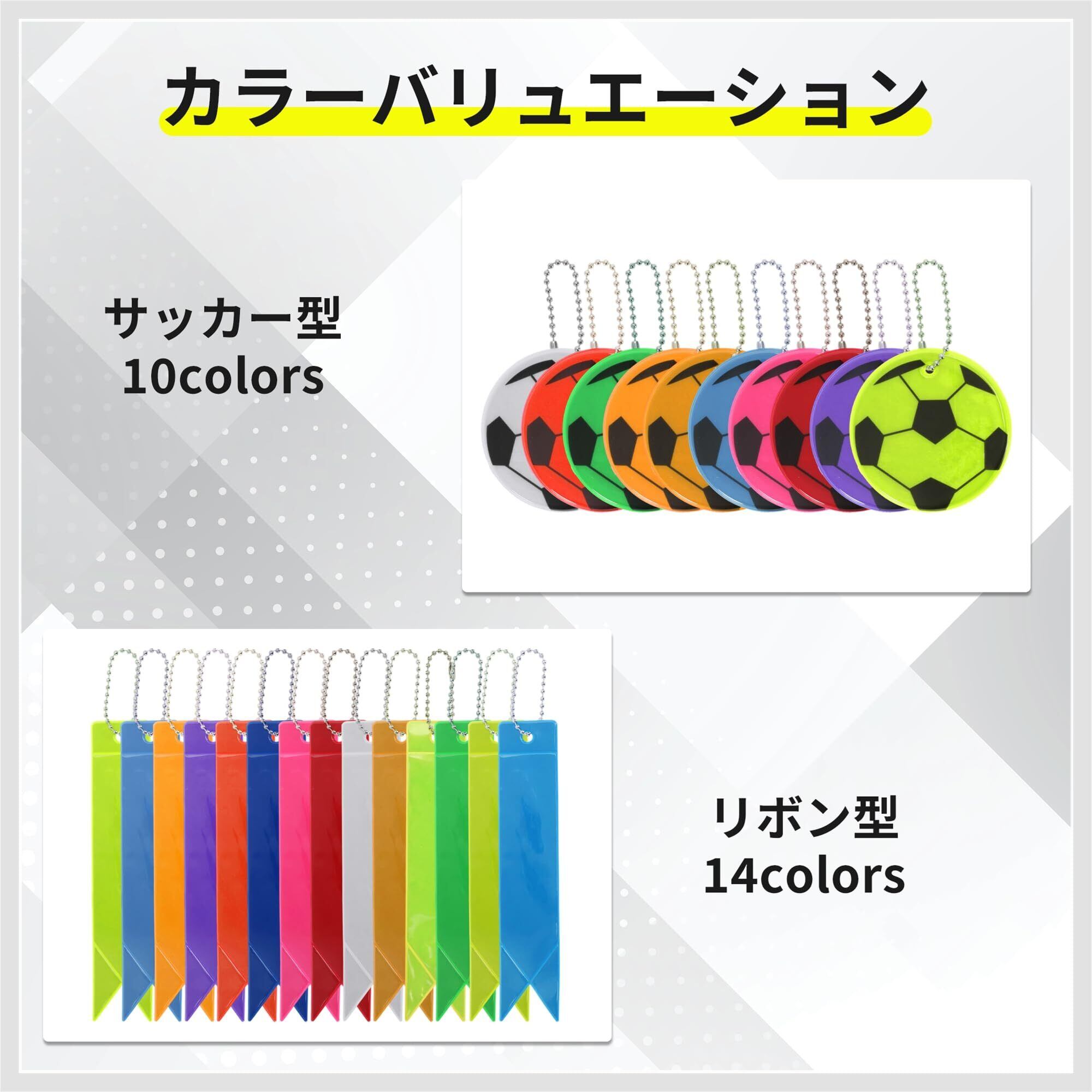 RENEWREVITAL 反射 キーホルダー リフレクター キーリング リボン型 反射板 交通安全 安全グッズ 通学 通勤 散歩 夜間 事故防止 蛍光緑 5個入り 14色から選べる