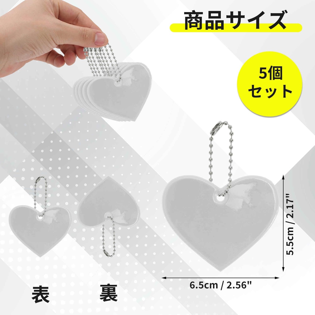 CAPASTEC 反射 キーホルダー リフレクター キーリング ハート型 反射板 交通安全 安全グッズ 通学 通勤 散歩 夜間 事故防止 5個入り 全13色