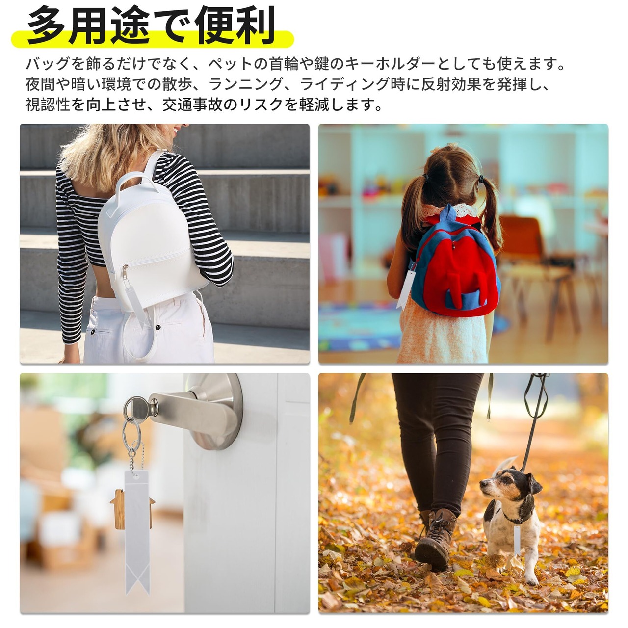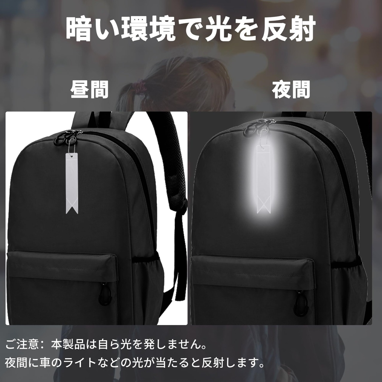 【視認性を高める】反射効果で視認性を向上させ、夜間の安全を守ります。特に自転車や徒歩での移動時に安心です。