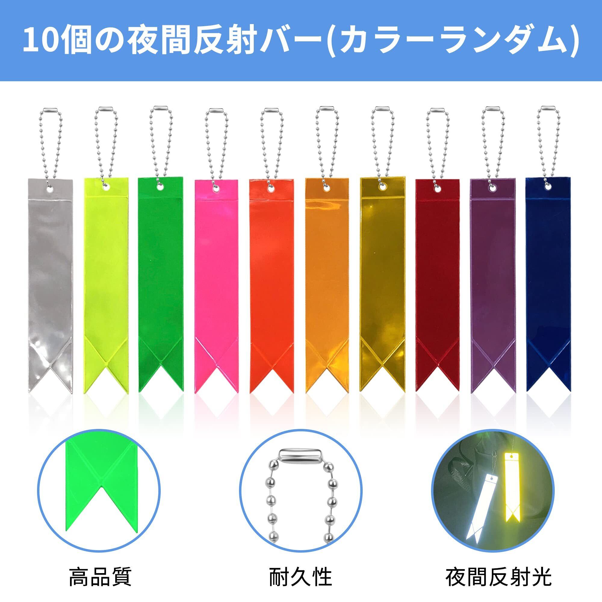 10本セット リフレクター キーホルダー 交通安全グッズ シンプル 夜間反射 防水 反射ストラップ バッグチャーム 光る チャーム アクセサリー 子供 大人 高齢者 ペット 通勤 通学 通園 部活 塾 ジョギング サイクリング ワークアウト 安全 守る (ランダムカラー)