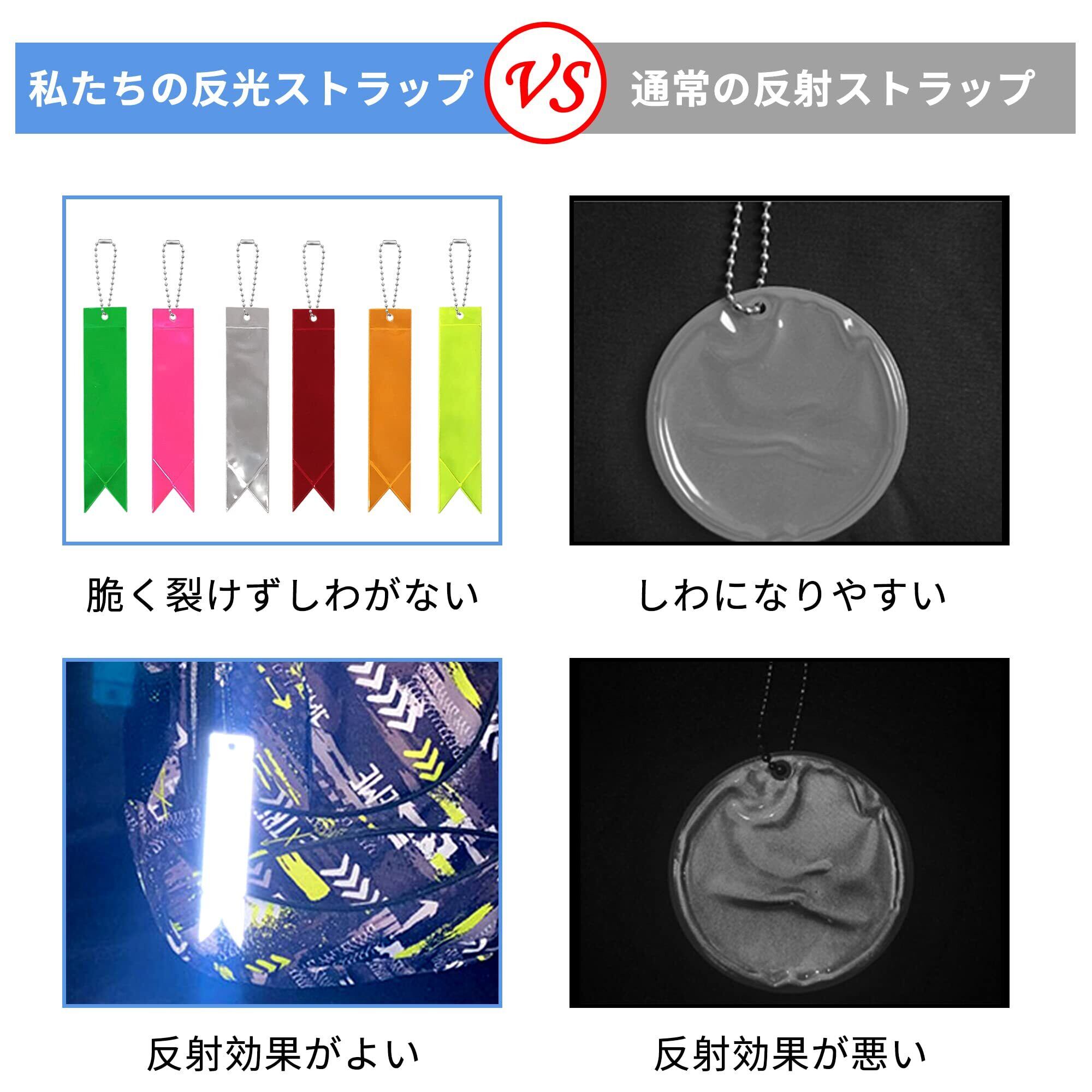 ✿10*ランダムカラーのリフレクターストラップ、用途で使い分けられます。家族全員が使えるくらいの量です。シンプルだけどかわいい、両面反射するので、とても使いやすいです。家族の安全を守りたい一心でオススメ!