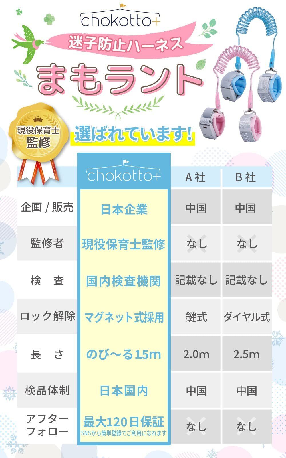 【新着商品】[chokotto+] 迷子防止ハーネス 【保育士が推薦・最新型マグネット式】 リード 迷子防止紐 【国内検査済◎リュックにもつけられる2WAYタイプ!】 手首 子供 セーフティハーネス こども 迷子防止 迷子 事故防止 安全 1.5m