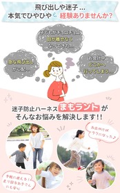 【ママ達お悩みの声、リストバンド式のまもラントが、すべて解決します!】 ・背中に着せるハーネスは脱ぎ着がめんどう、ファッションの邪魔になる、冬のモコモコ服の上から付けるのをイヤがる、リュック紐タイプはお気に入りリュックが使えない・・などなど。 →chokotto+の『まもラント』はリストバンド式!!これらのお悩み、すべて解決します。