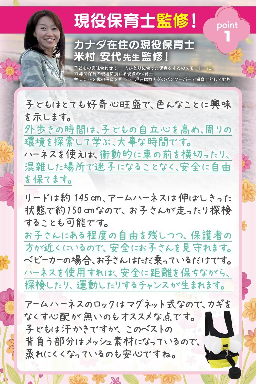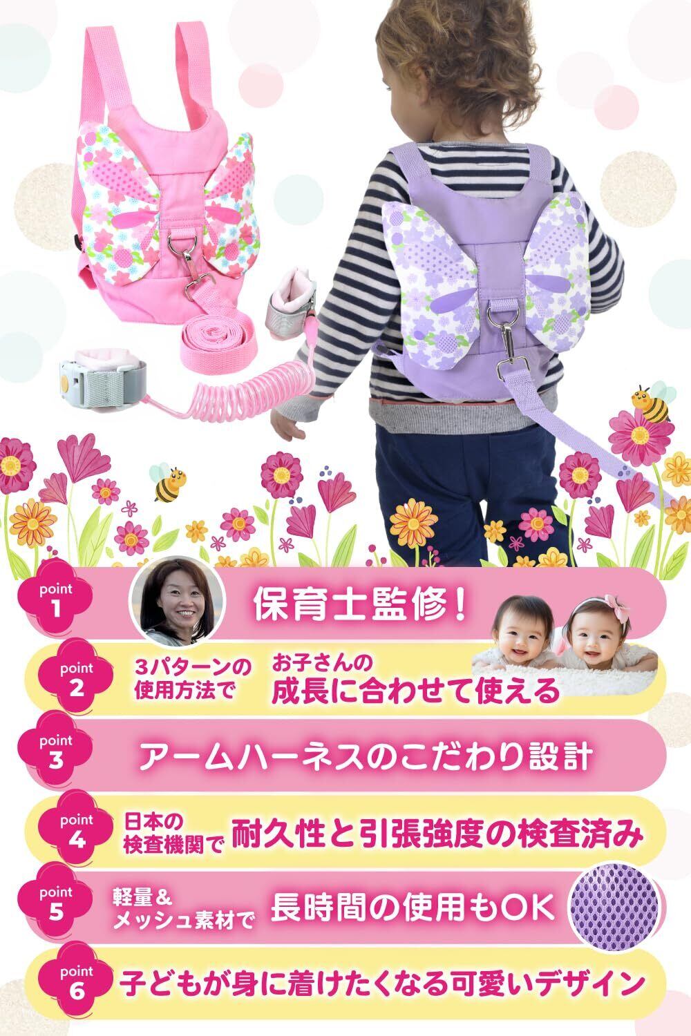 【新着商品】ハーネス 子供 【現役保育士監修/選べる3パターンの使い方】 迷子防止 子供用ハーネス 【第三者機関にて耐久性検査済】リード 迷子防止紐 子ども迷子 (はちさん)