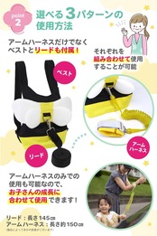 【選べる3パターンの使用方法!】ベスト+ハーネス ベスト+リード ハーネスのみの3パターンの使用方法で幅広い年代のお子さんに対応可能!