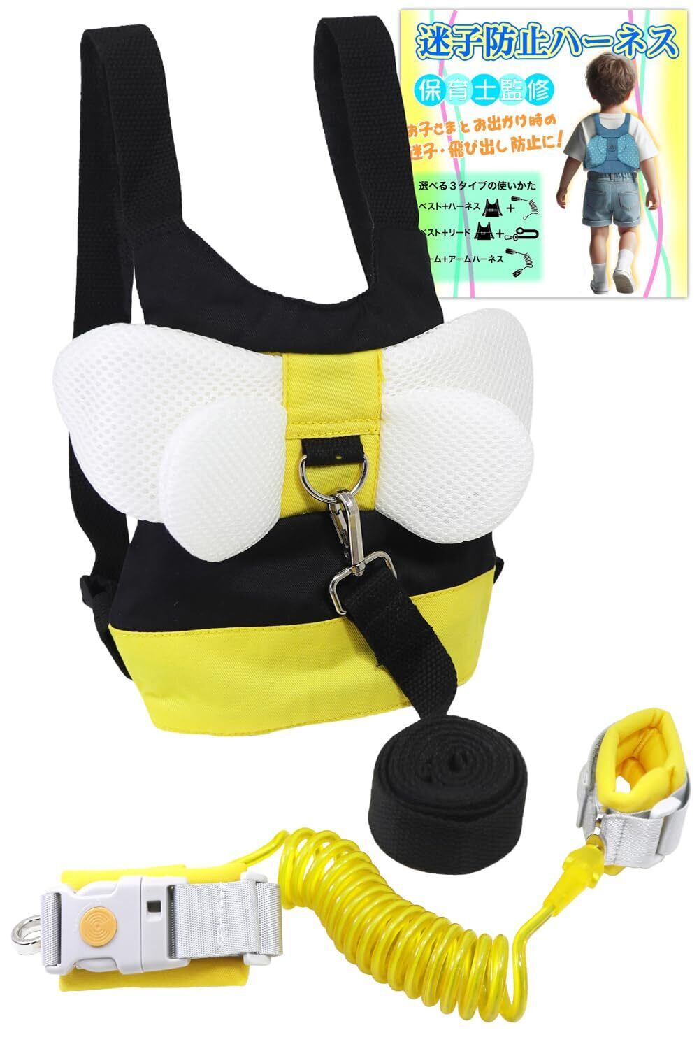 ハーネス 子供 【現役保育士監修/選べる3パターンの使い方】 迷子防止 子供用ハーネス 【第三者機関にて耐久性検査済】リード 迷子防止紐 子ども迷子 (はちさん)