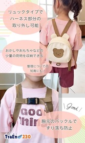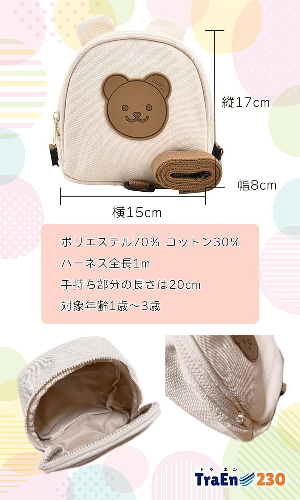 【在庫処分】TraEn230 子供 ハーネス ハーネスべルト 迷子防止 ベビーリュック 赤ちゃん 転倒防止 迷子紐 くま 可愛い (ベージュ)