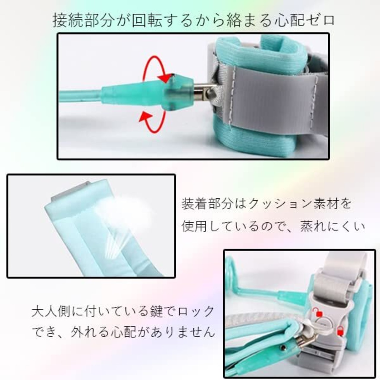 お子様の迷子防止や事故防止に! 様々なシーン(旅行、人混み、テーマパーク、交通量の多い所)で大活躍! 迷子防止ひもをつけて安全にお出かけができます。 丈夫で伸縮可能な素材を使用しております。 安全ロック付きで大人側にあるキーっで子供が和の装着部分にロックをかけることができます。 【商品仕様】 カラー ブルー
