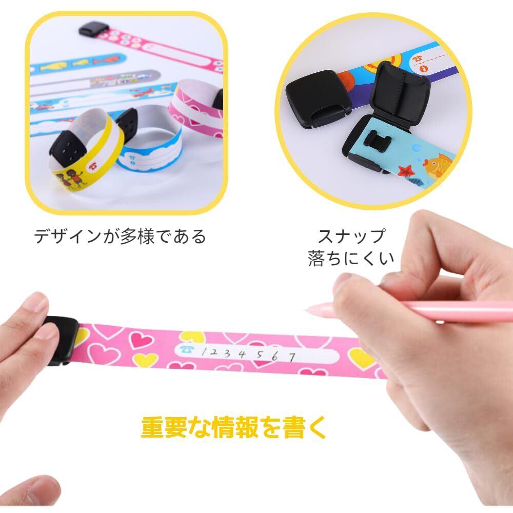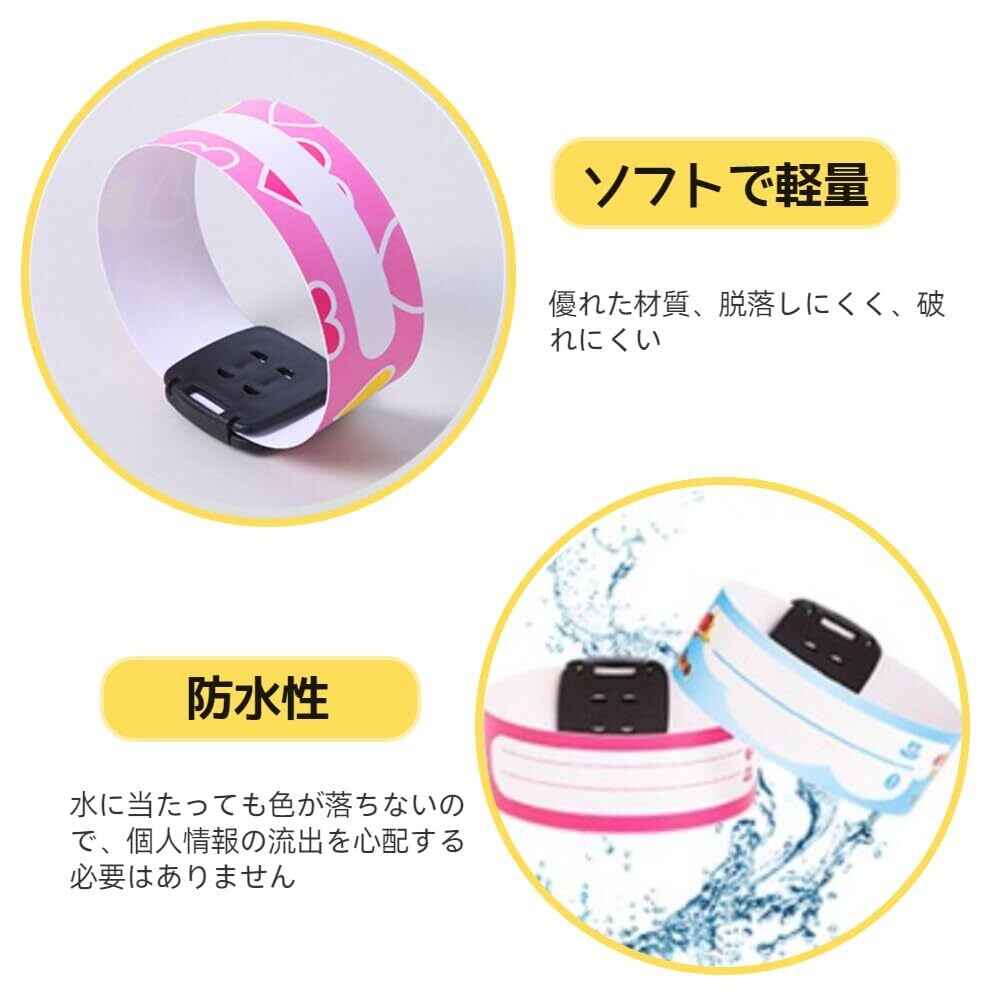 【紛失防止デザイン】お子様の電話番号、名前、住所などの個人情報を手書きできる識別バンドを採用。