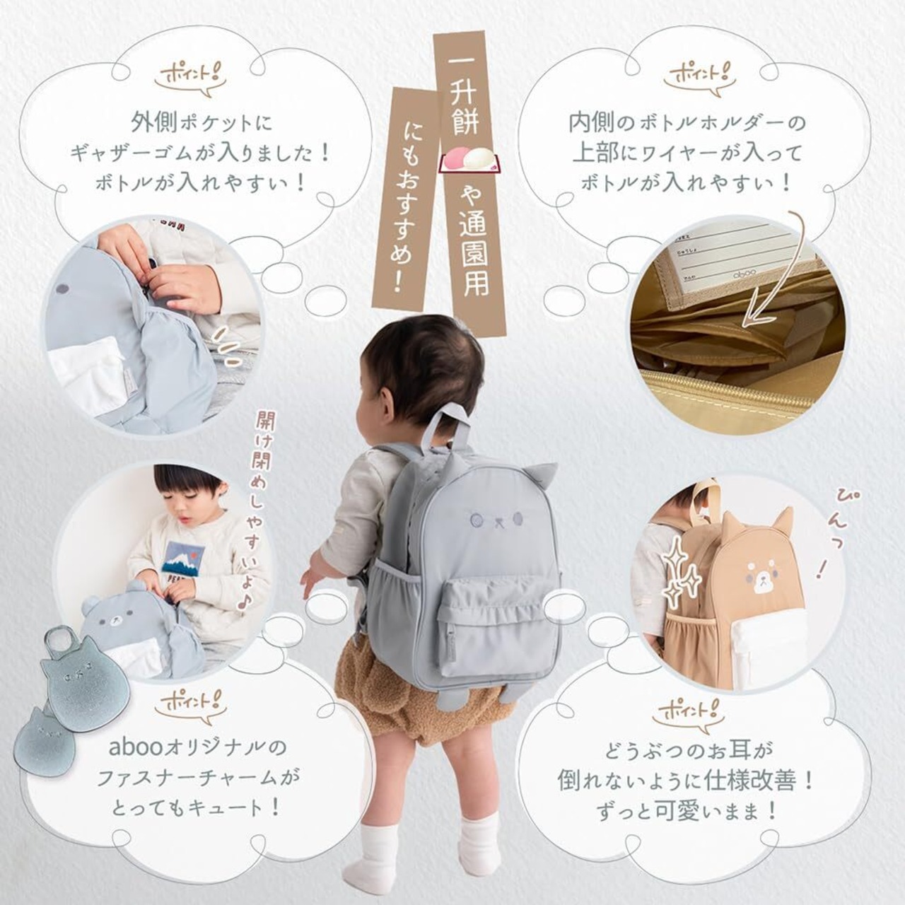 【新着商品】[aboo] アブー 3WAYベビーリュック ハーネス付き ショルダーバッグ 迷子 ひも 誕生日プレゼント 一升餅 保育園 幼児 1~4歳