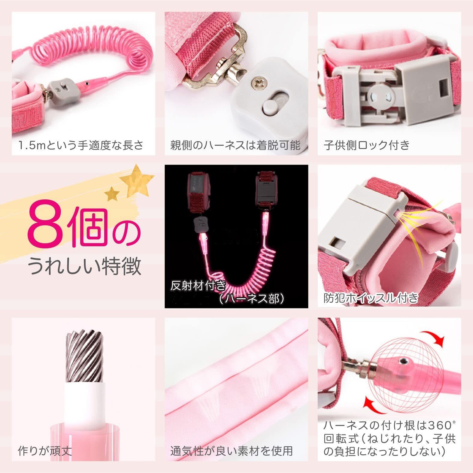 【安全安心の為に】子供の飛び出し防止、買い物の支払いの際に少し手を離したすきにどこかに行ってしまった。色んな場面でお役に立てていただけます。バンドにはクッション性のある柔らかい通気性のいい商品を使用しています。