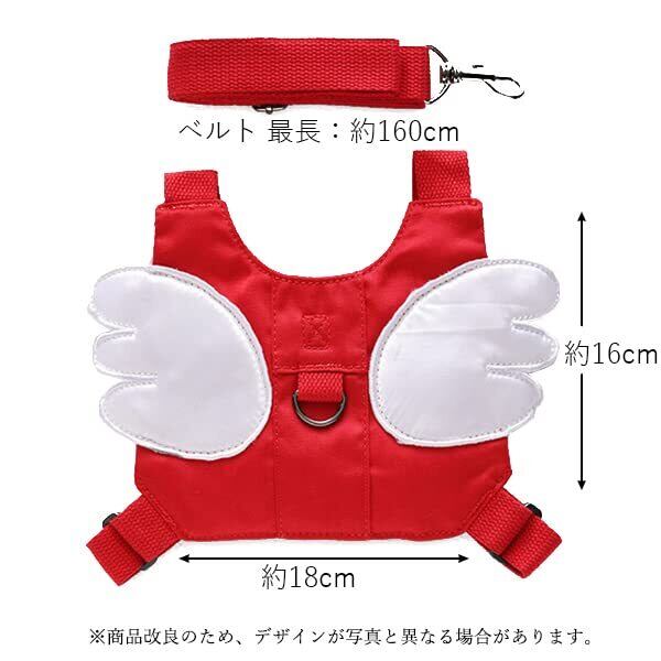 ・万が一の時に安心。小さなお子様の飛び出しや、迷子の防止に。 ・天使の羽が付いてとても可愛いいデザインです。 ・お洗濯可能なので、いつでも清潔です。 ・通気性も抜群です。 ・着脱が簡単なバックル式でリードも取り外し可能です。 【商品仕様】 カラー レッド