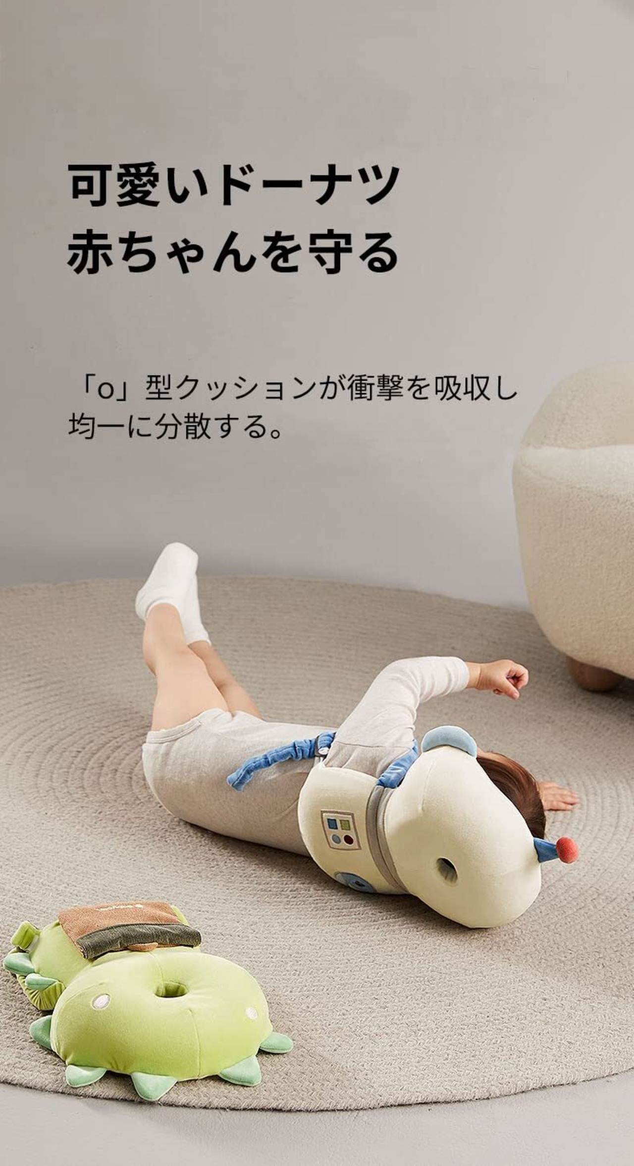 可愛いドーナツ形のクッションで衝撃を吸収し均一に分散します,重さは220グラムで超軽量、赤ちゃんに負担をかかりません。歩く際のバランスも崩しません,肌触りがとても柔らかく、ふわふわでお肌にとても優しいです.