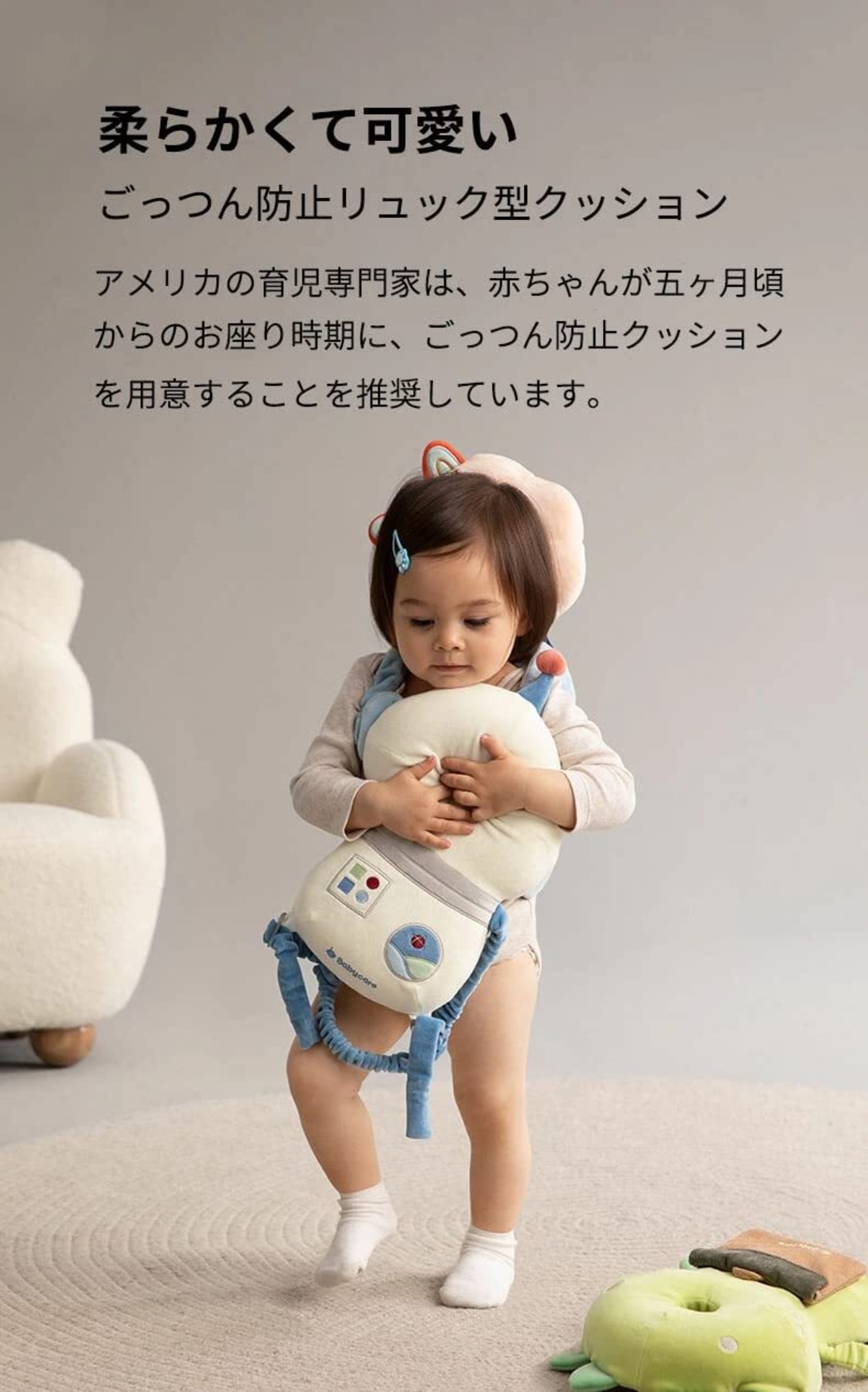 【bc babycare】 赤ちゃん 転倒防止 リュック ごっつん防止 頭ガード ヘッドガード 転倒防止クッション 頭 保護 ベビー 保護枕 軽量 通気 かわいい 低反発