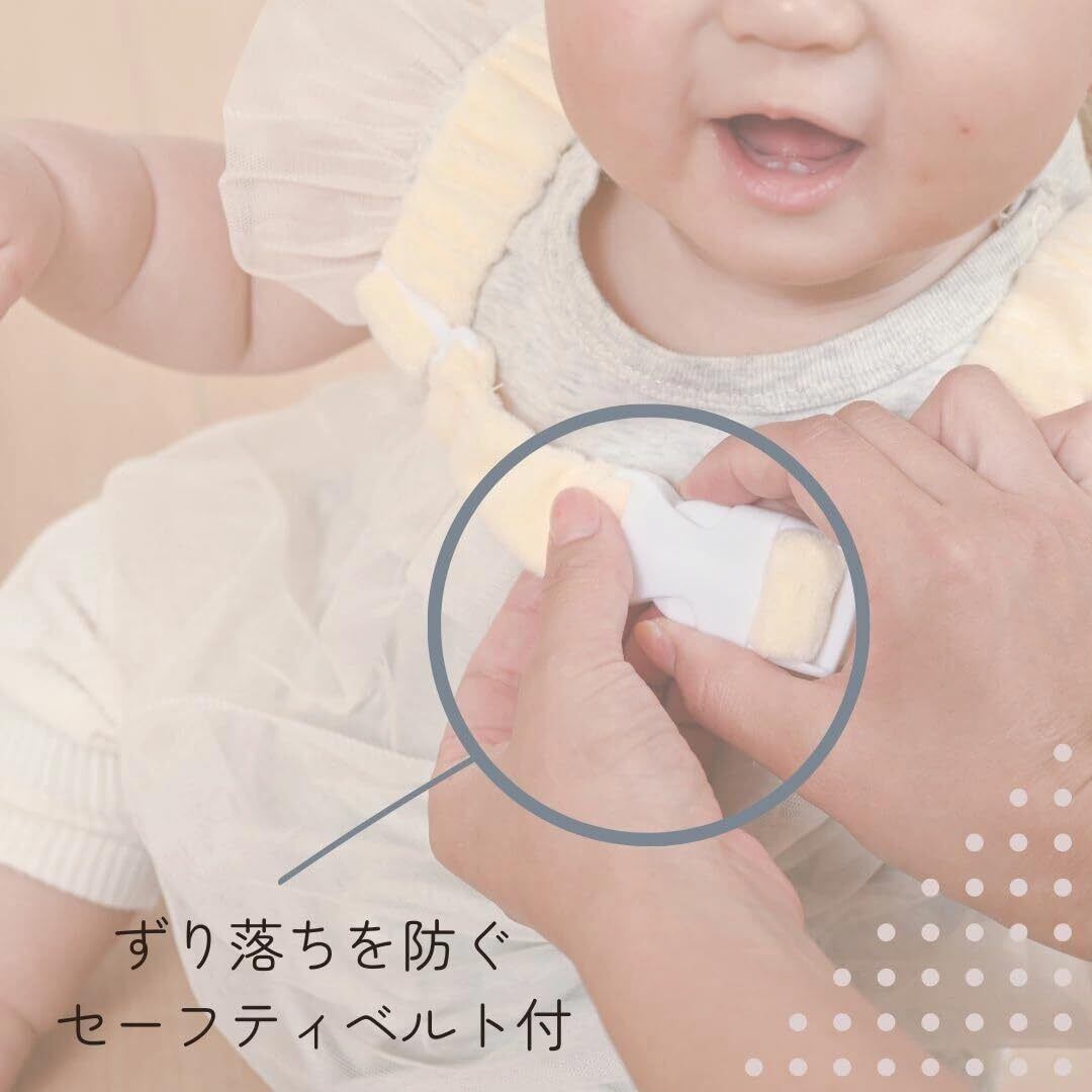 【安心のセーフティベルト付き】 赤ちゃんのずり落ちを防ぐセーフティベルトを標準装備。動き回ってもズレにくく、安全にフィットします。