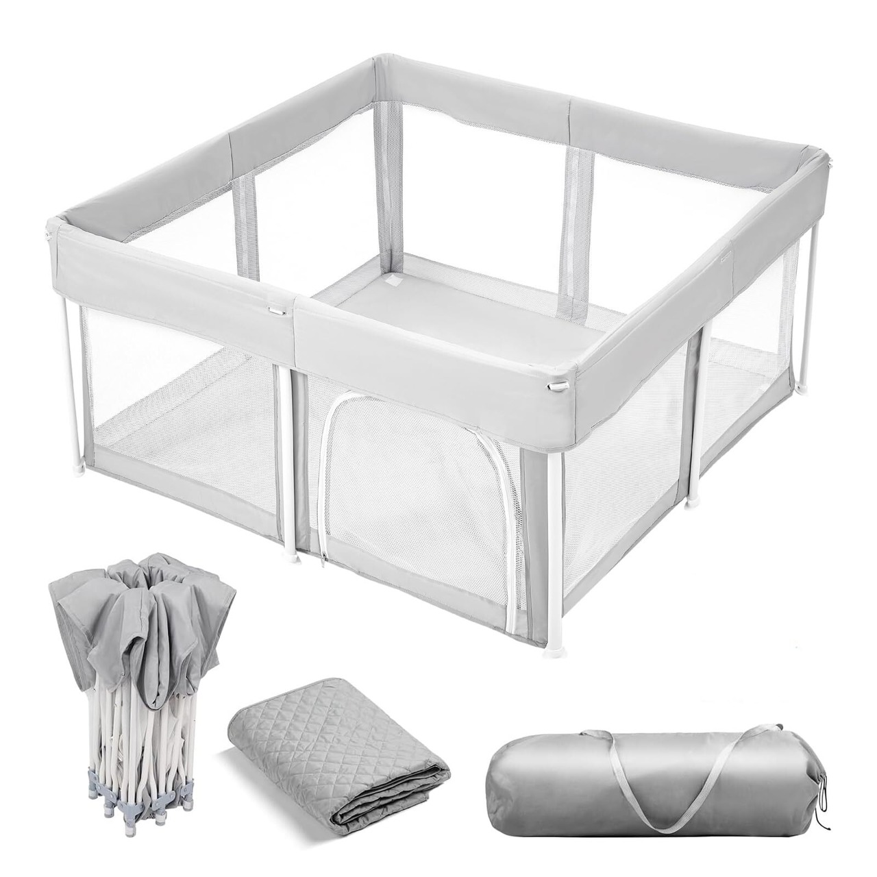 【在庫処分】ベビーサークル 折りたたみ サークル 赤ちゃん メッシュ ベビーフェンス キッズサークル プレイヤード 組立不要 工具不要 ベビーマット付き 収納バッグ付き (125*125(cm))