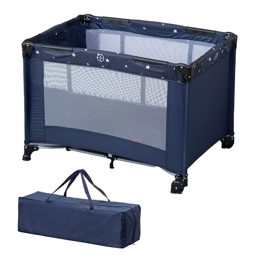 【特価商品】アイリスプラザ プレイヤード ベビー 折りたたみ 安心 ベビーサークル ストッパー付キャスター キャリーバッグ付 お昼寝マット ネイビー 1個 (x 1) 0か月~ 88-1170