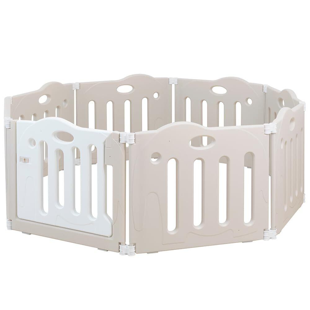 【特価セール】日本育児 たためる ベビーサークル pawoo (ベージュ, 本体(パネル8枚)) ベビーフェンス 折りたたみ 扉付き 簡単組立 140×140cm 高さ60cm