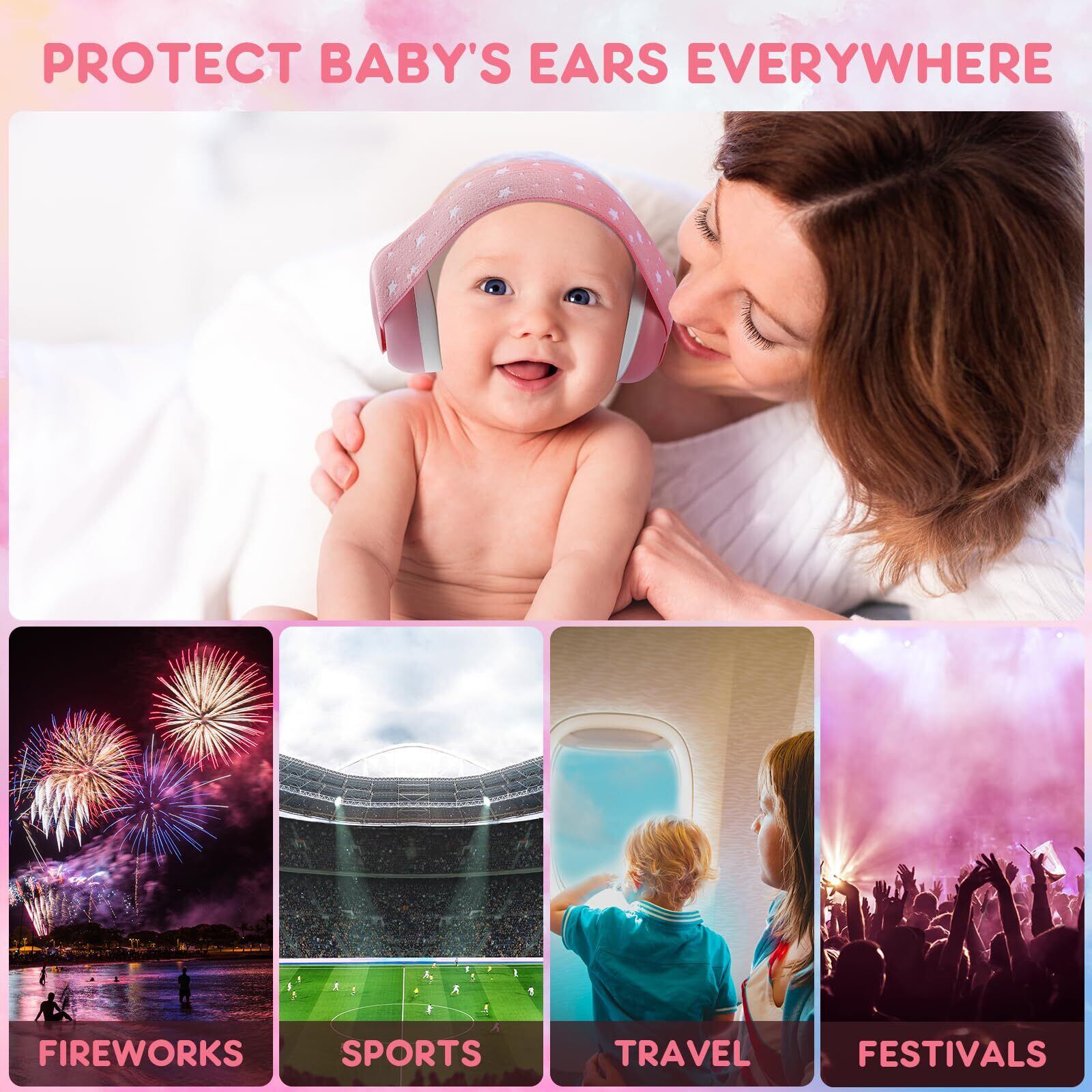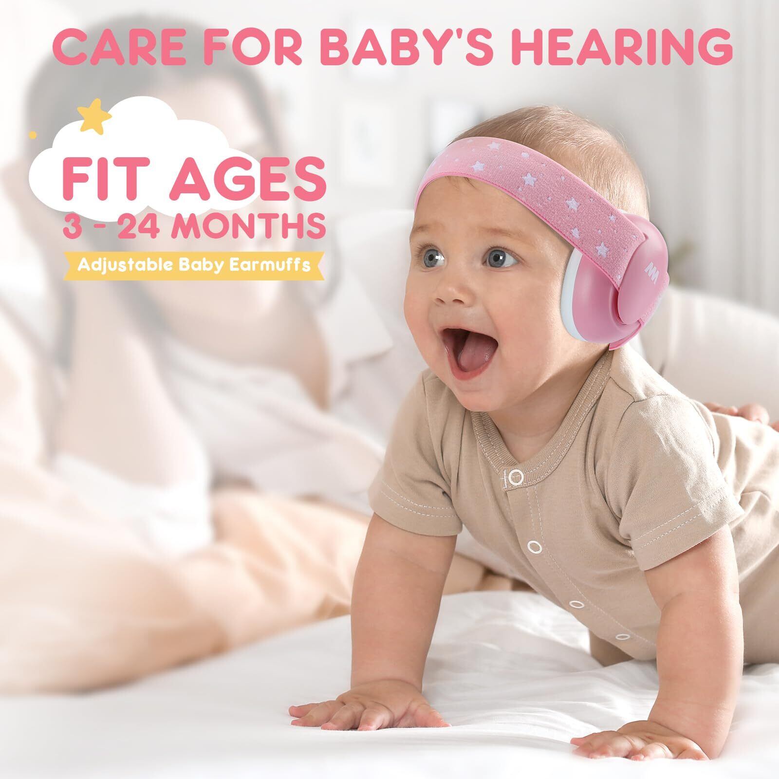 【赤ちゃんにぴったり】:弾性あるヘッドバンドは、赤ちゃんの頭に合わせて自由にサイズを調整可能で、頭部にフィットできます。調節可能なデザインで、3ヶ月から24ヶ月の赤ちゃんに適しており、お子様の成長に信頼できる聴覚保護を提供します。
