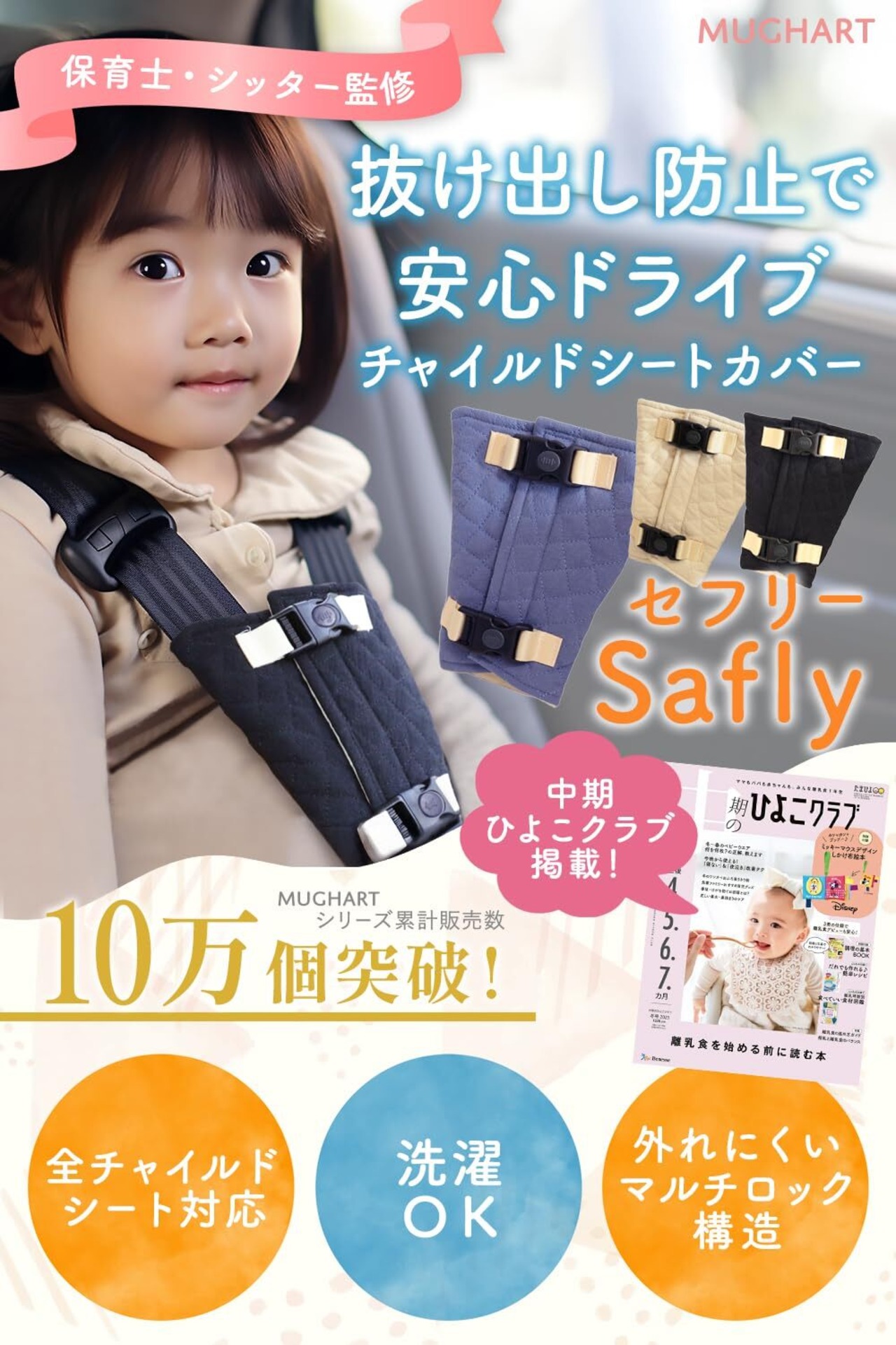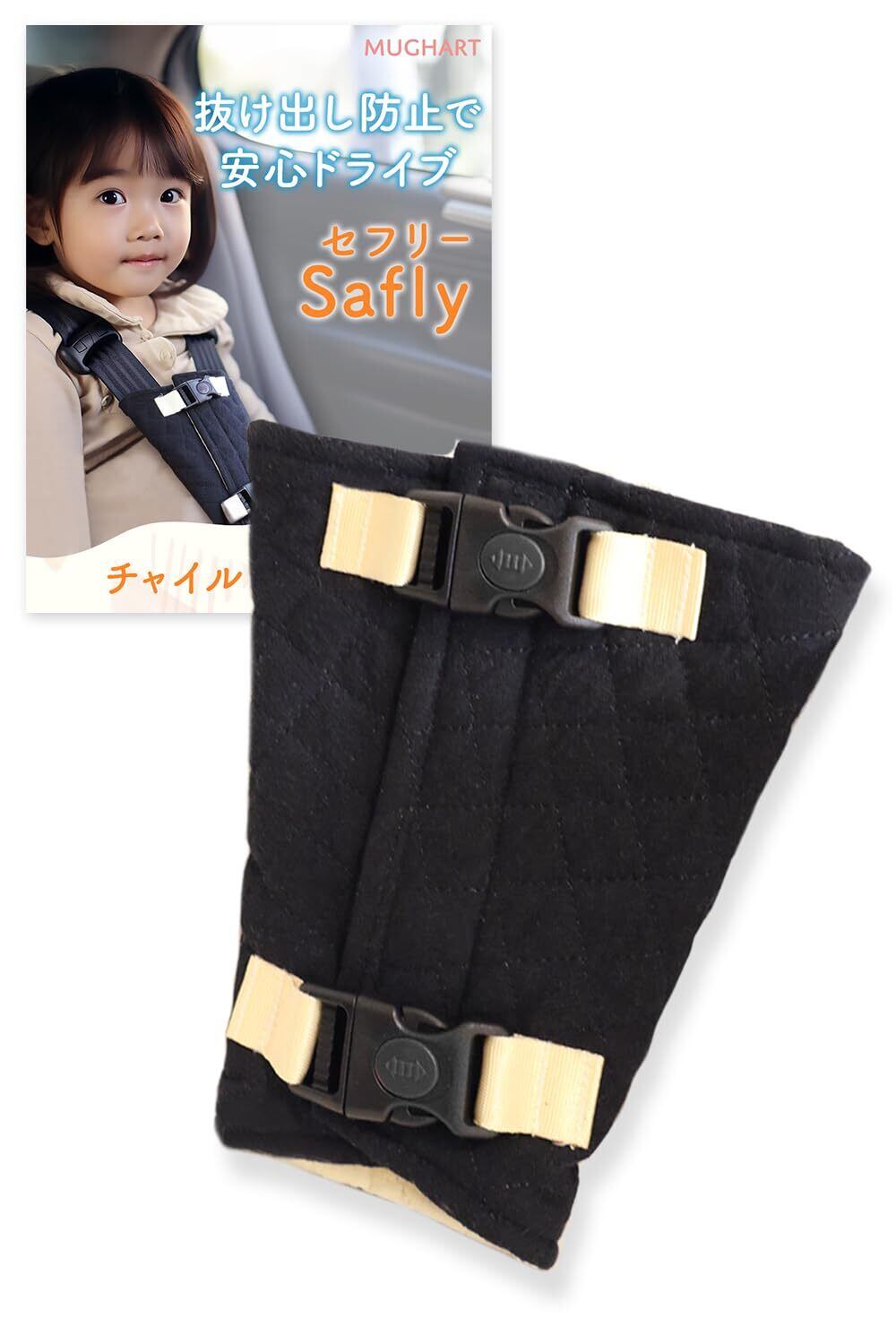 【ひよこクラブ掲載x保育士監修】 チャイルドシート 抜け出し防止 抜け出し防止ベルト チャイルドシート 脱出防止 シートベルト セフリー Mughart『マルチロックで抜け出しにくい』 (ブラック)