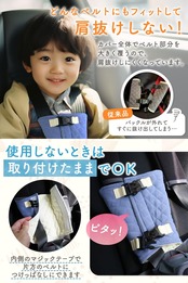 【 チャイルドシートの抜け出し防止に 】 お子様の チャイルドシート からの抜け出しを防止する、" チャイルドシートカバー "です。 チャイルドシート や ベビーカー などからの 肩抜け 、 すり抜け 対策としてお使いいただけます。取り付けもカンタンで、わかりやすい「オールカラー」の説明書もついております。