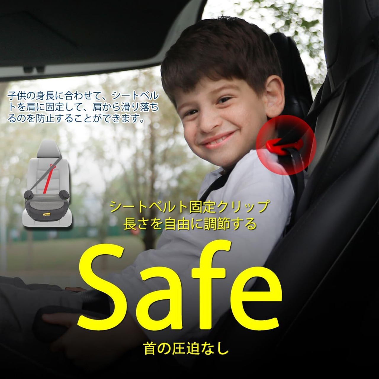 付属品:シートベルトがお子様の首を締めるのを防ぐために、長さ調整可能なシートベルトクリップがベースに取り付けられています。 ブースターの取り付けをより簡単かつ迅速にするために、2 つの固定ガイドキャップも提供します。