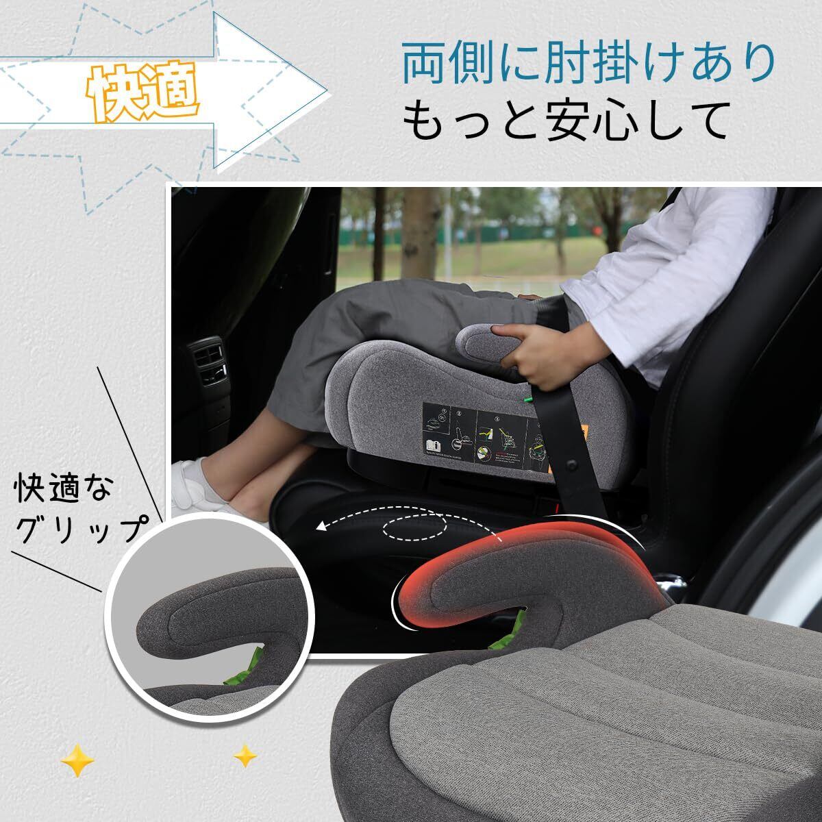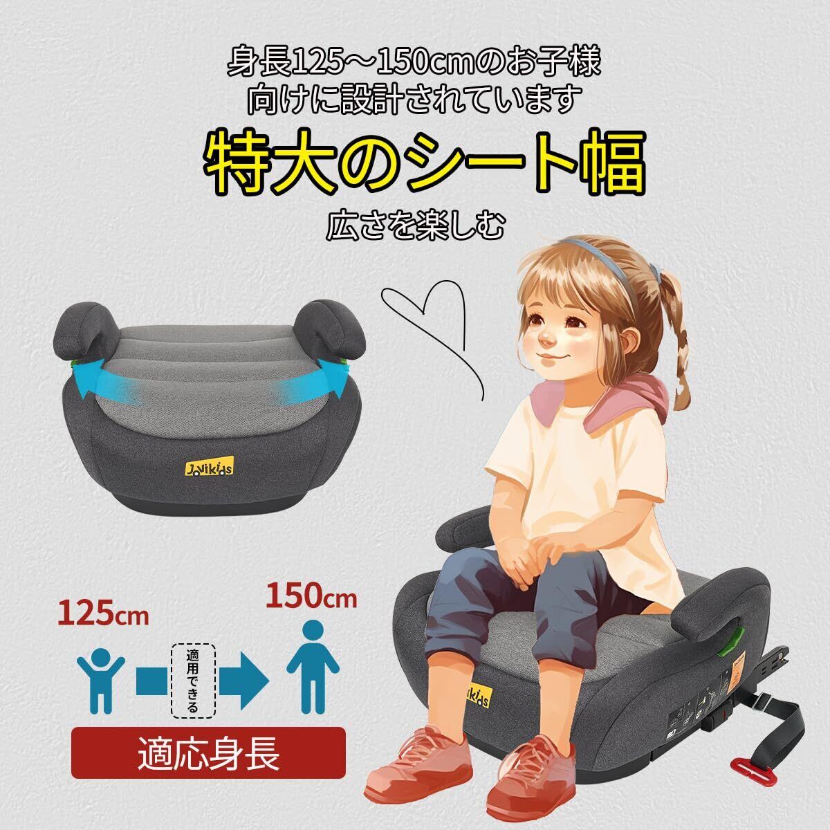 Jovikids ジュニアシート ISOFIX、R129適合 ブースターシート ロングユース、極厚クッション、幼児用車シートと固定ガイド キャップとシートベルトクリップ、125~150cm (ブラック 厚くする)