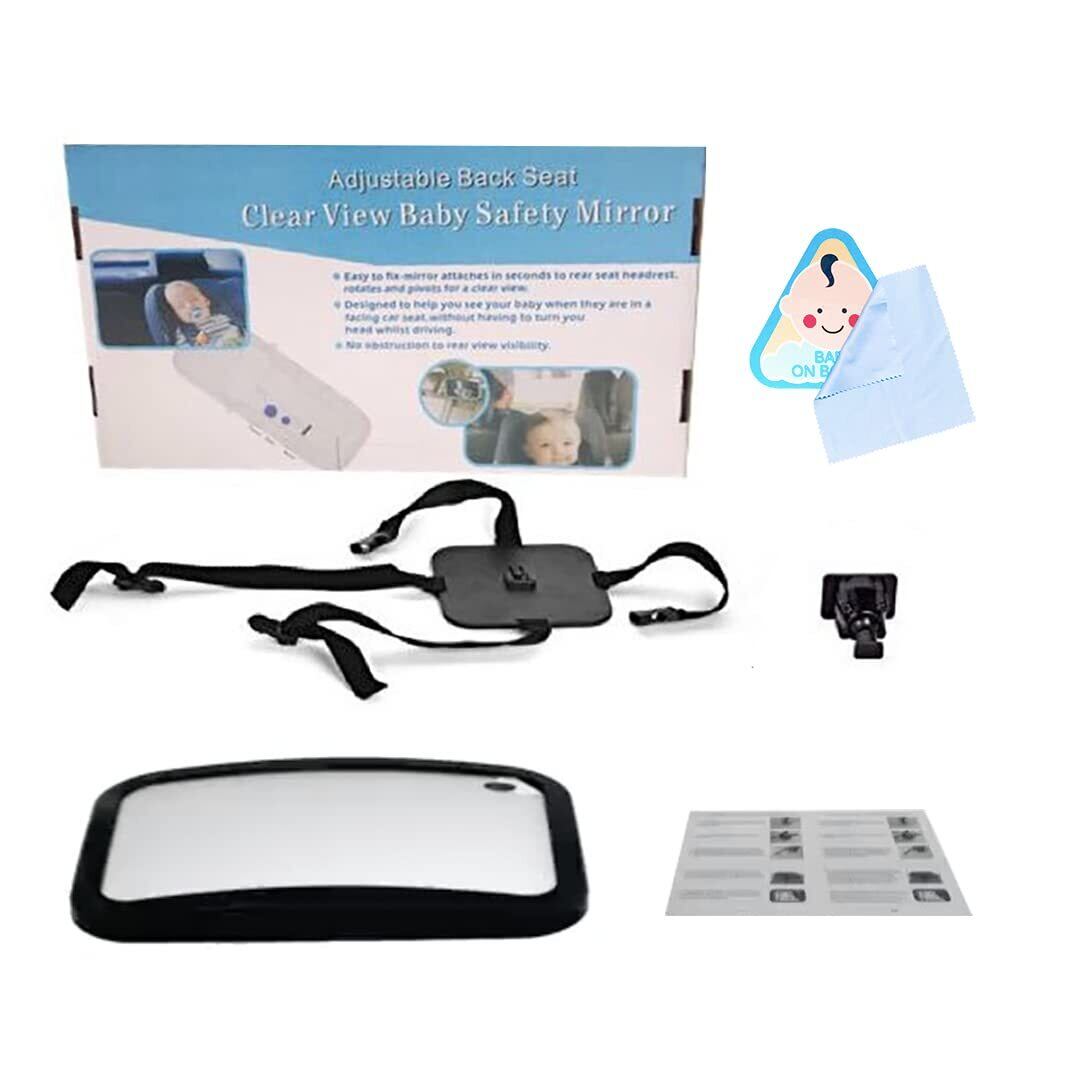 [MOMSMENU] 車用 ベビー インサイト ミラー 300×190mm 大視野ミラー 後ろに向かず子供の様子を確認 360度回転 ステッカーに付き