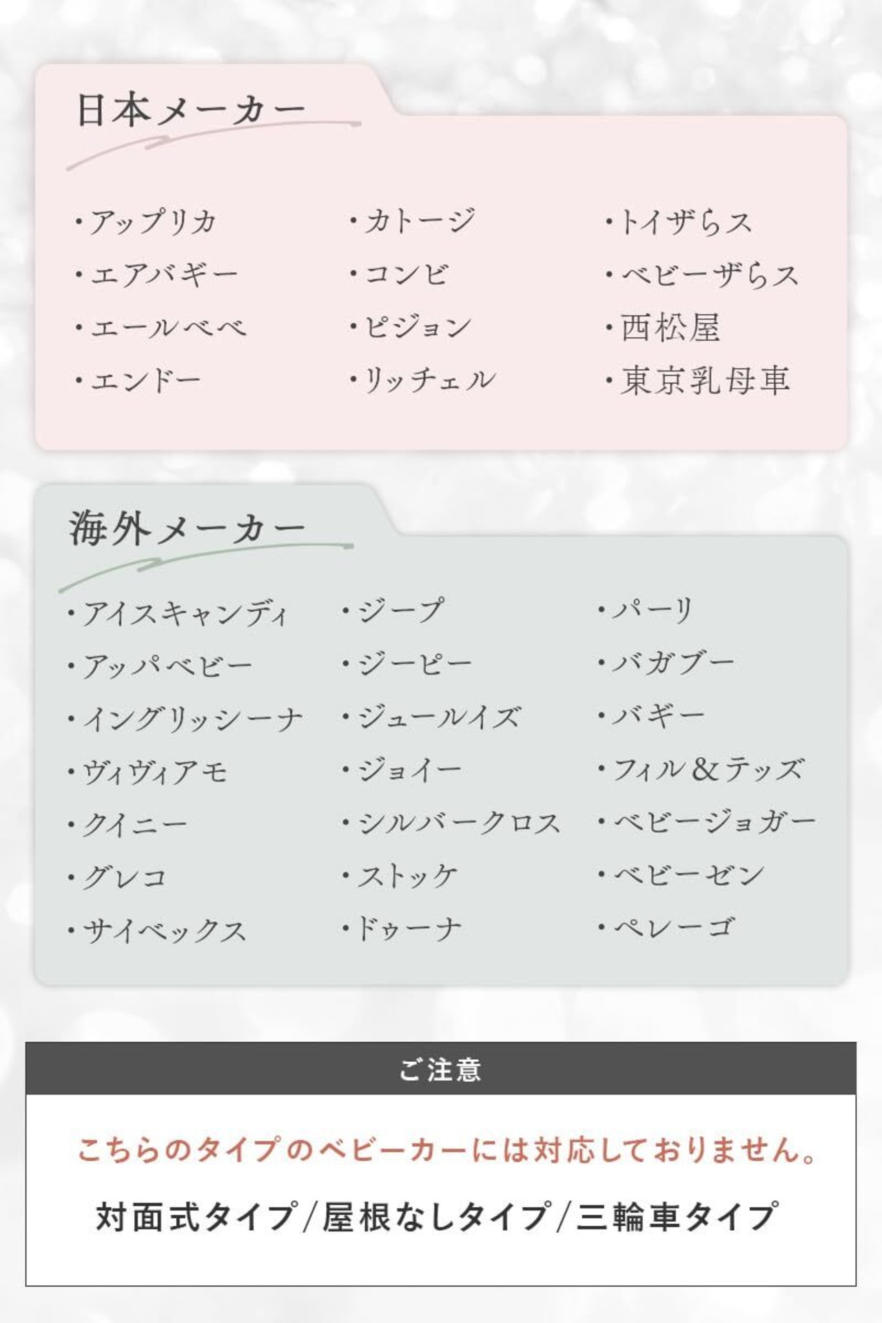 互換性オプション ほとんどのベビーカー