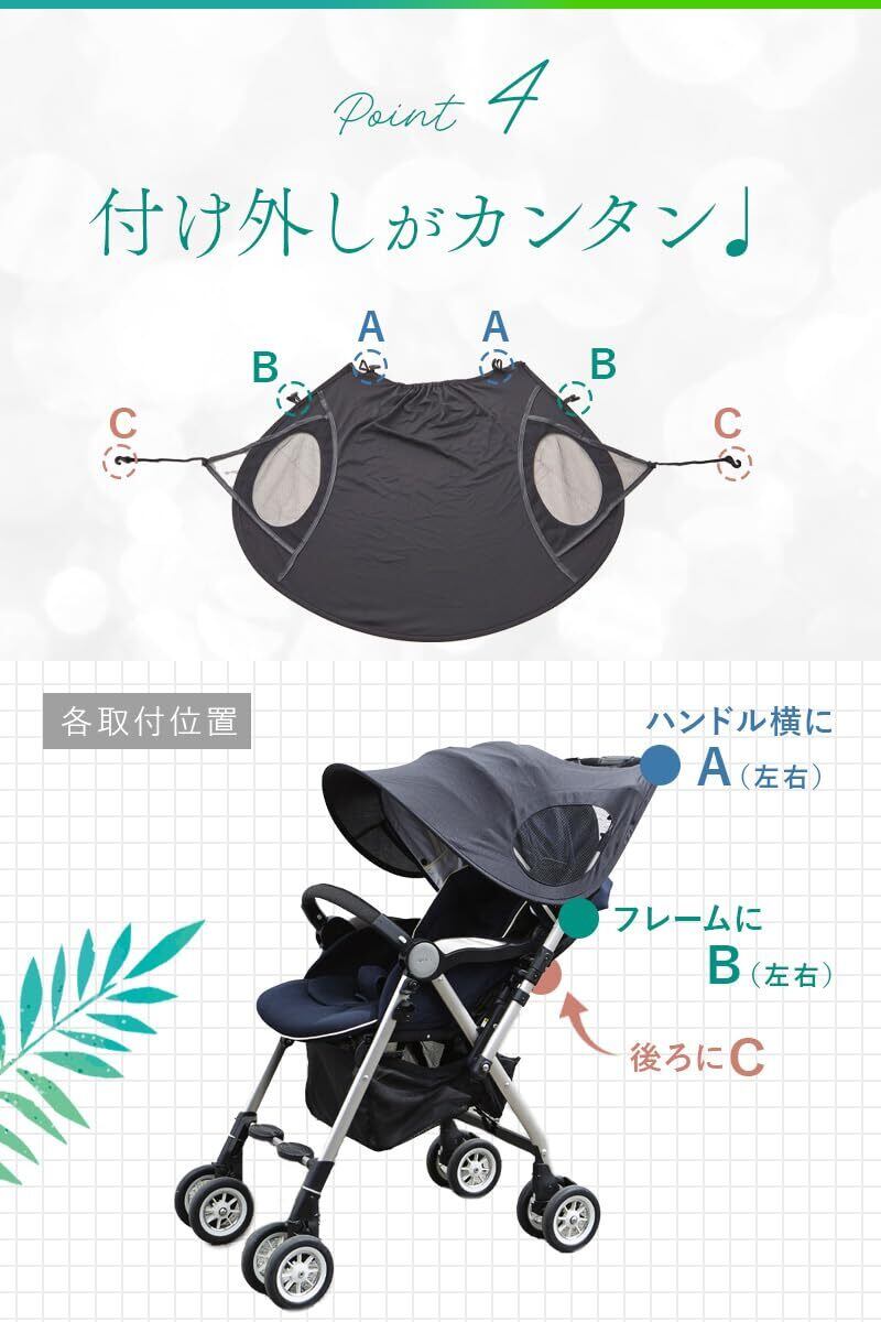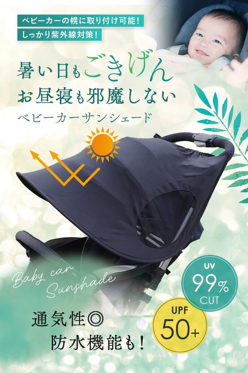sezu ベビーカー サンシェード 日よけカバー UVカット 99% 遮光 メッシュ 通気性 紫外線対策 A型 B型 バギー兼用 軽量 折りたたみ 黒