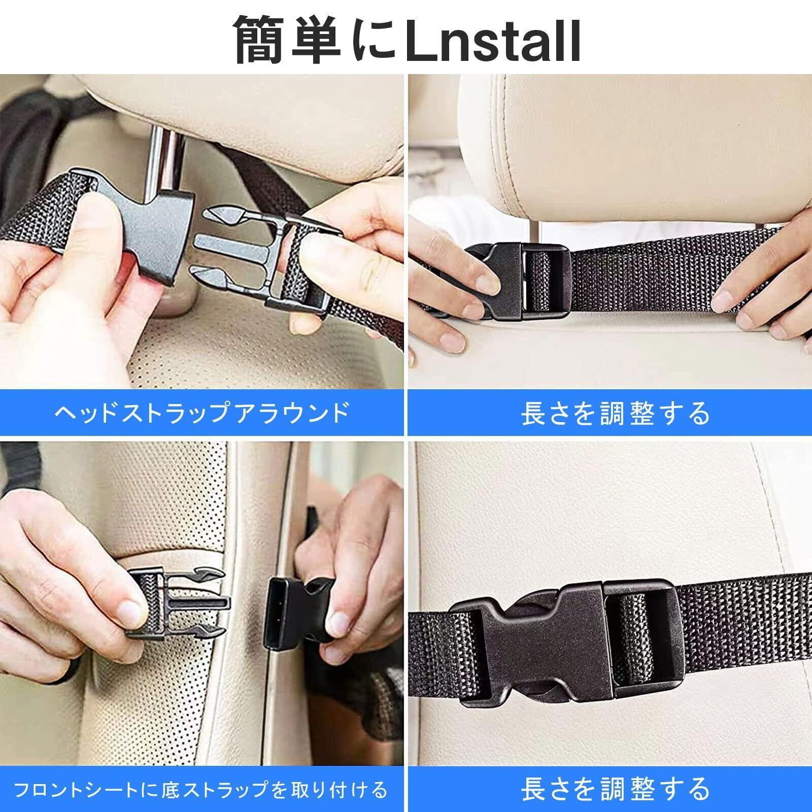 【簡易セットアップ】シートバックポケット 工具は一切不要で、簡単に取り付けることができます。取付ベルトをヘッドレストやシートに通し、バックルで固定するだけで取り付け完了です。