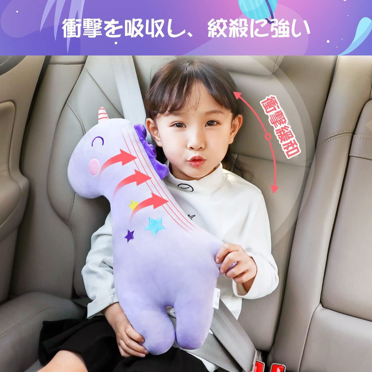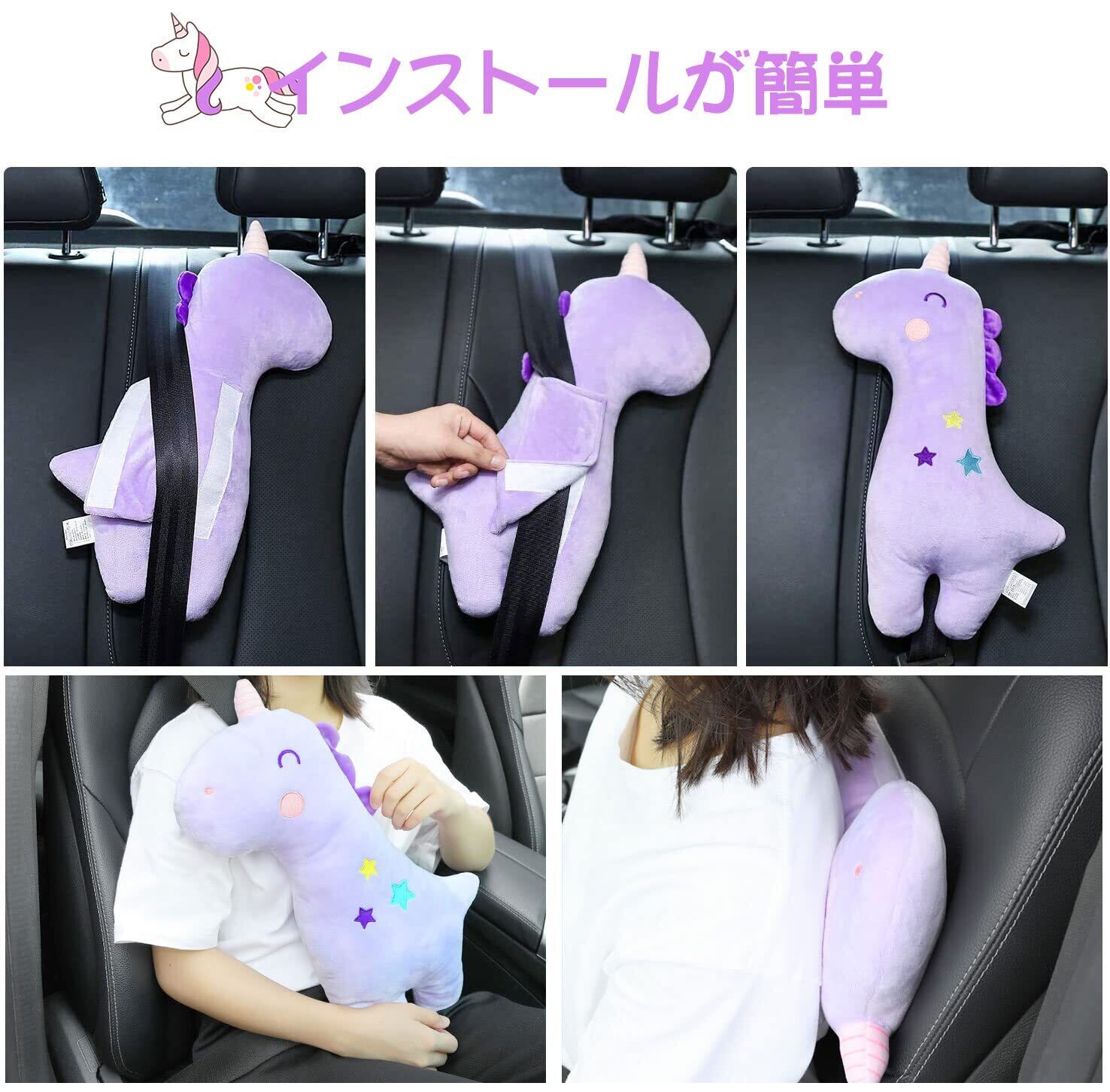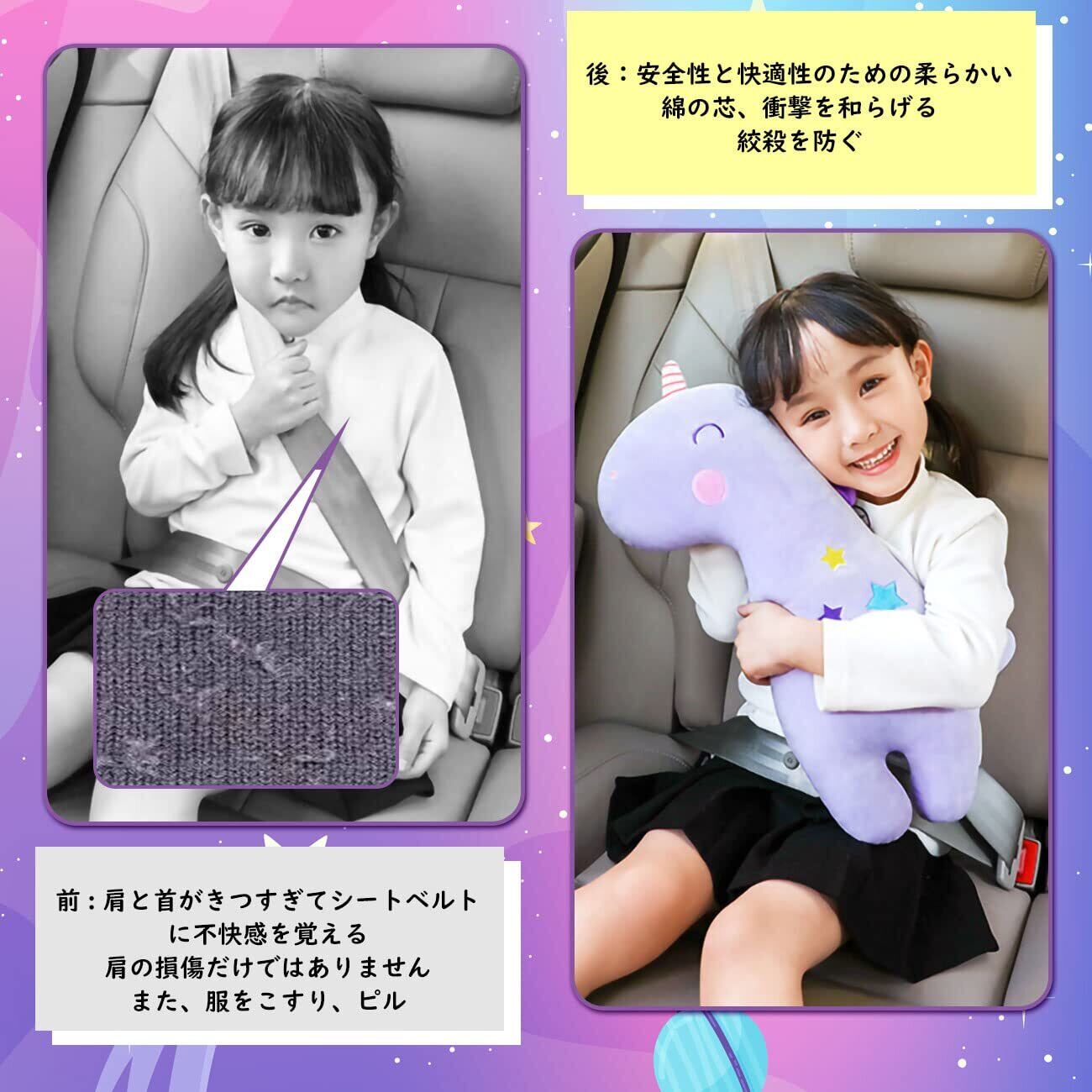 シートベルトカバー チャイルドカーシートベルト 枕 肩パッド シートベルト 子供 チャイルドシート カバー 車用品 チャイルドシート クッション 子供のぬいぐるみ かわいい 旅行 ギフト プレゼントNamioka (紫のユニコーン)