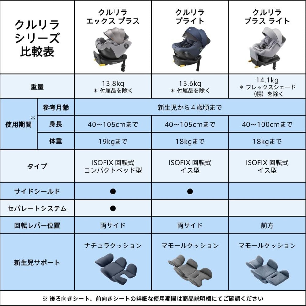 ●アップリカの「クルリラ プライト」は、新生児から使えるISOFIX取り付けタイプの回転式チャイルドシート。