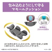 ●マモールクッションは、未熟な赤ちゃんを包み込むようにして守る。 *身長60cmまで有効です。
