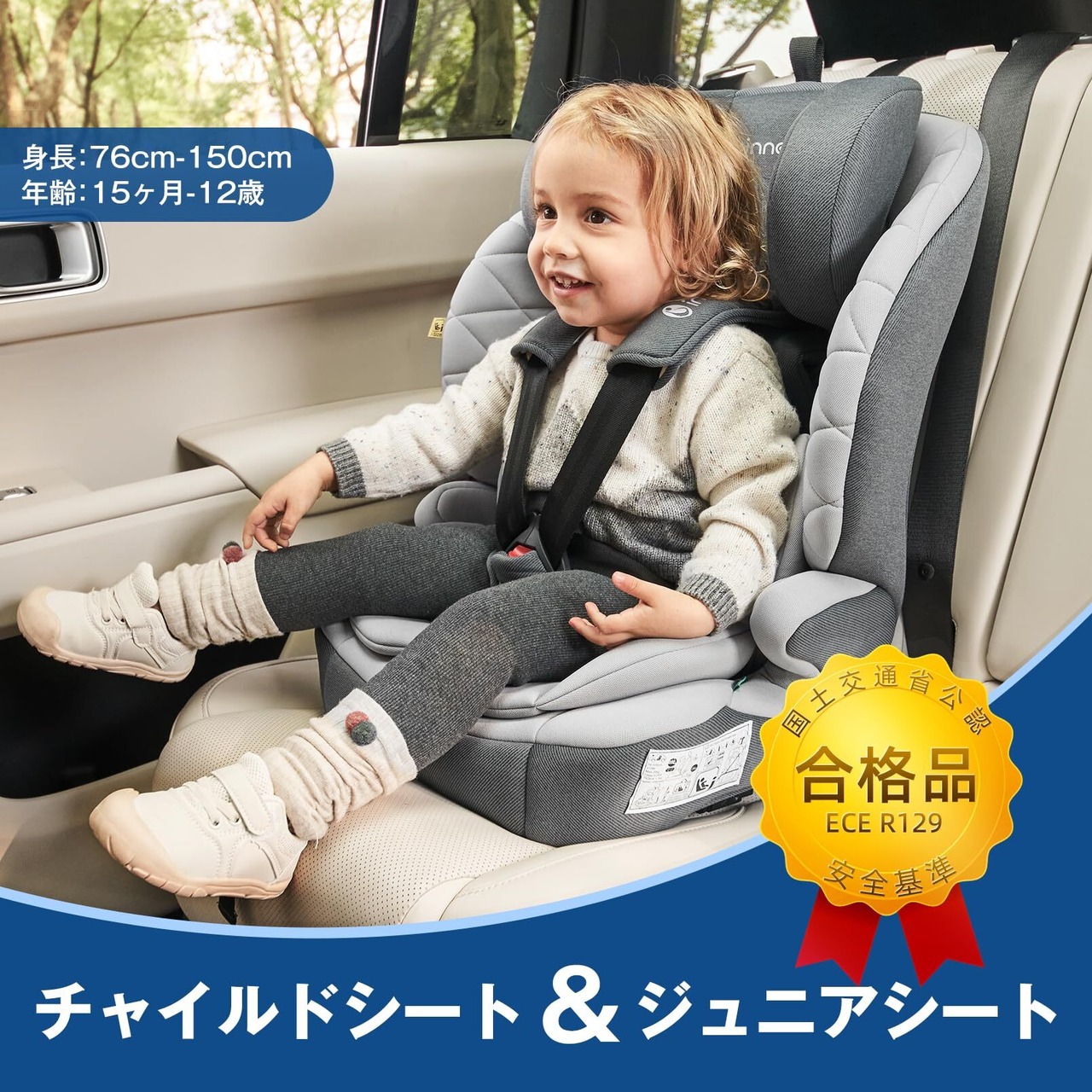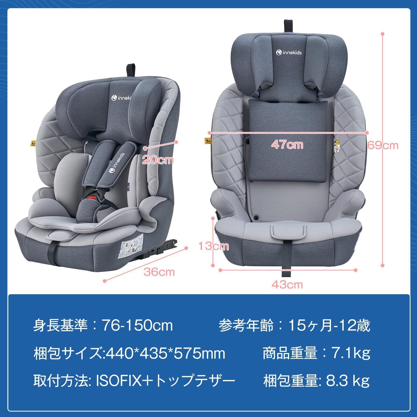 innokids チャイルドシート ISOFIX固定 R129適合 i-Size 15ヶ月~12歳頃まで ジュニアシート 取付簡単 ロングユース 洗えるカバー(グレー)